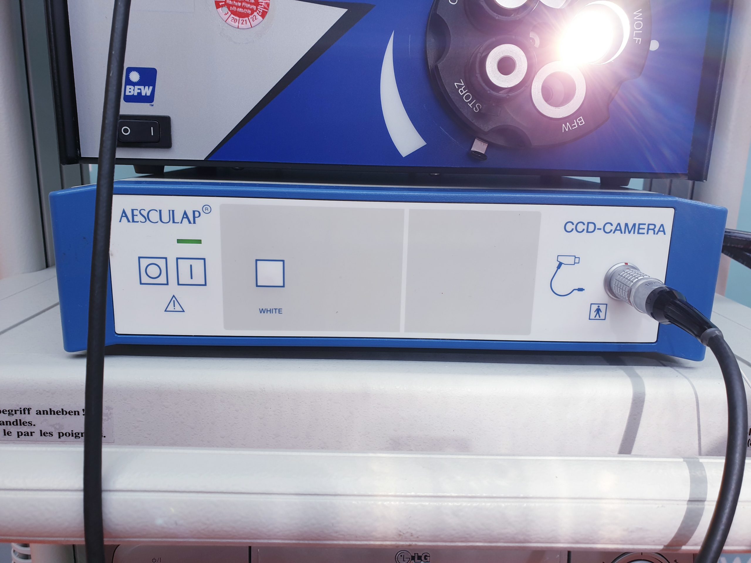 Aesculap Laparaskopie Turm mit BFW Maxenon Xi 300 Lichtquelle, Storz Telescope Wärmer, ….