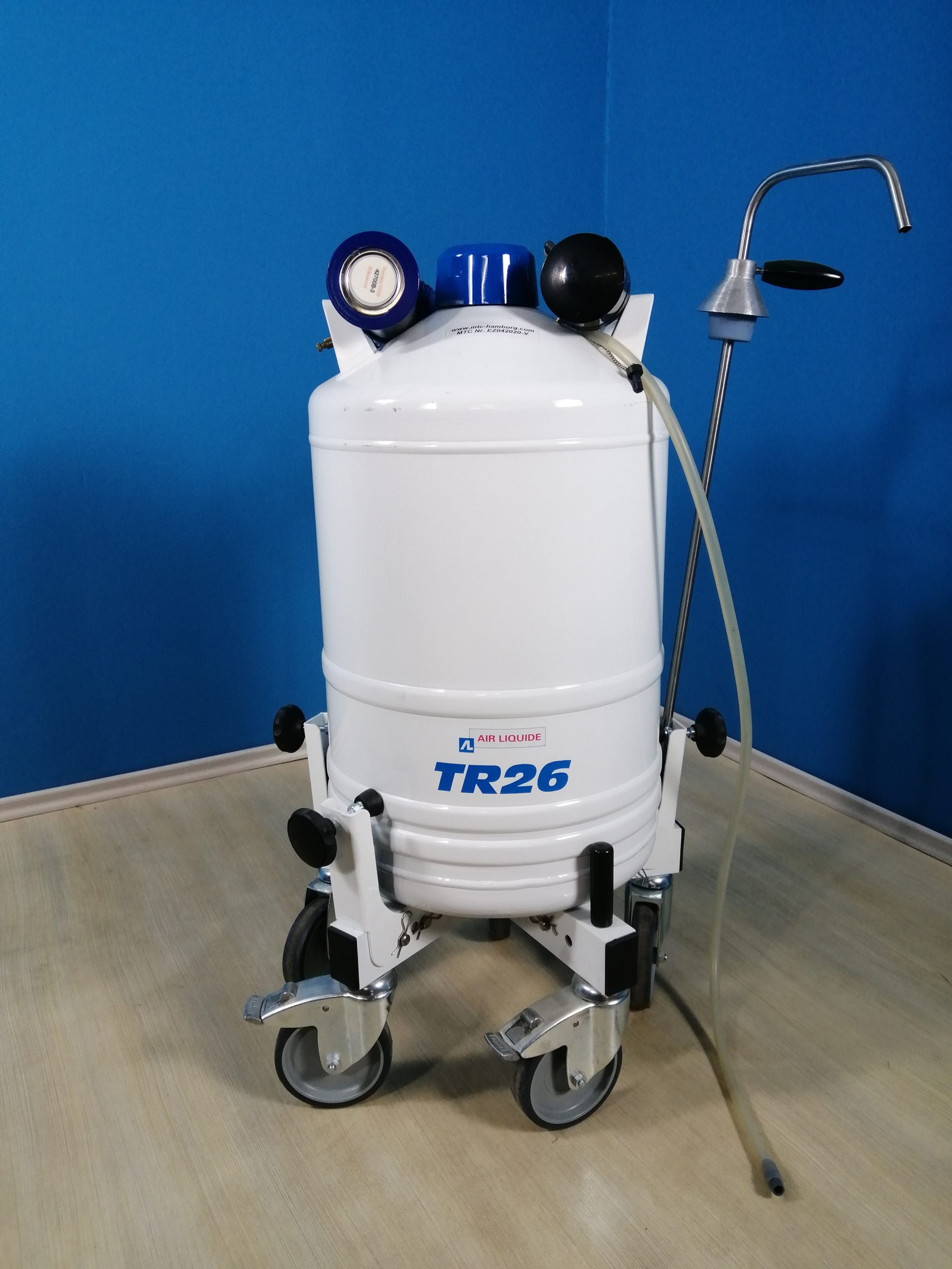 Das Air Liquide TR 26-TR26 Lagergefäß bietet höchste Sicherheit und Zuverlässigkeit bei der Kryokonservierung. Es erfüllt die strengen Anforderungen im medizinischen Bereich und gewährleistet durch seine Konstruktion eine langlebige und stabile Lagerumgebung für empfindliche Proben.