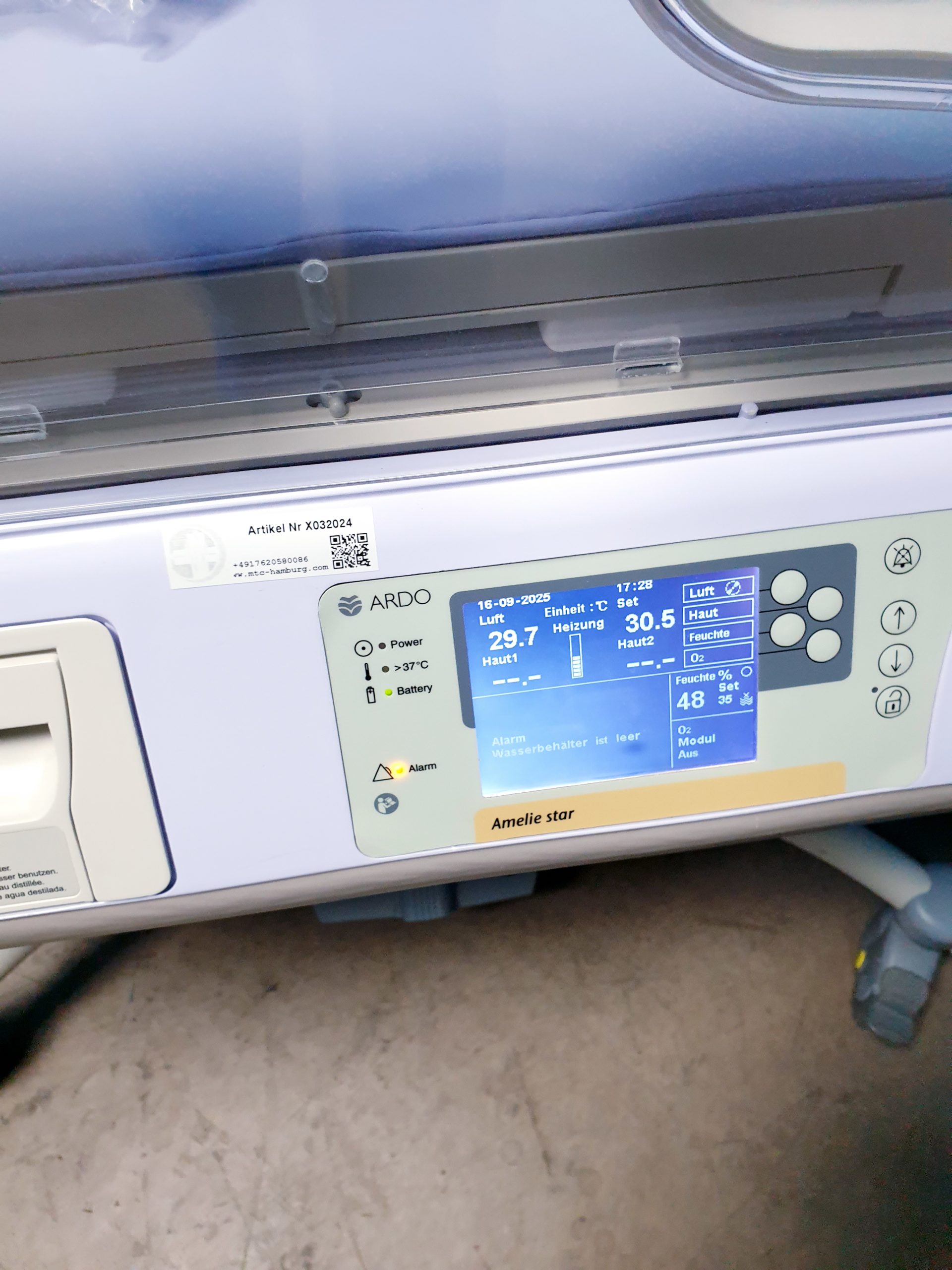 - Integrierte Überwachung: Sensoren und Anzeigen für Temperatur, Feuchtigkeit und weitere relevante Parameter unterstützen die Pflegekräfte bei der kontinuierlichen Überwachung der Bedingungen in Echtzeit.
