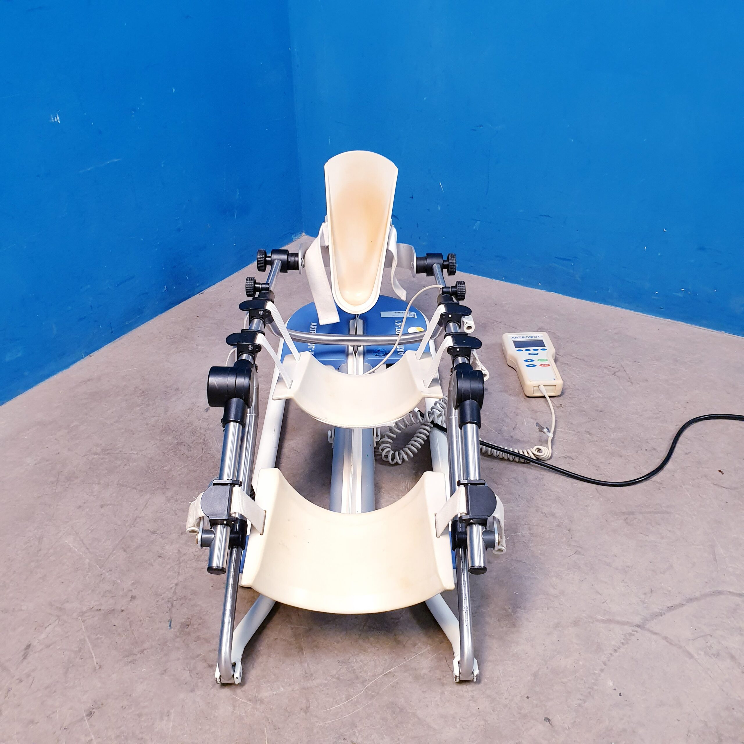- Sanfte, motorisierte Bewegung: Die motorisierte Steuerung ermöglicht eine gleichmäßige und schonende Bewegung des Kniegelenks ohne patientenseitige Belastung.