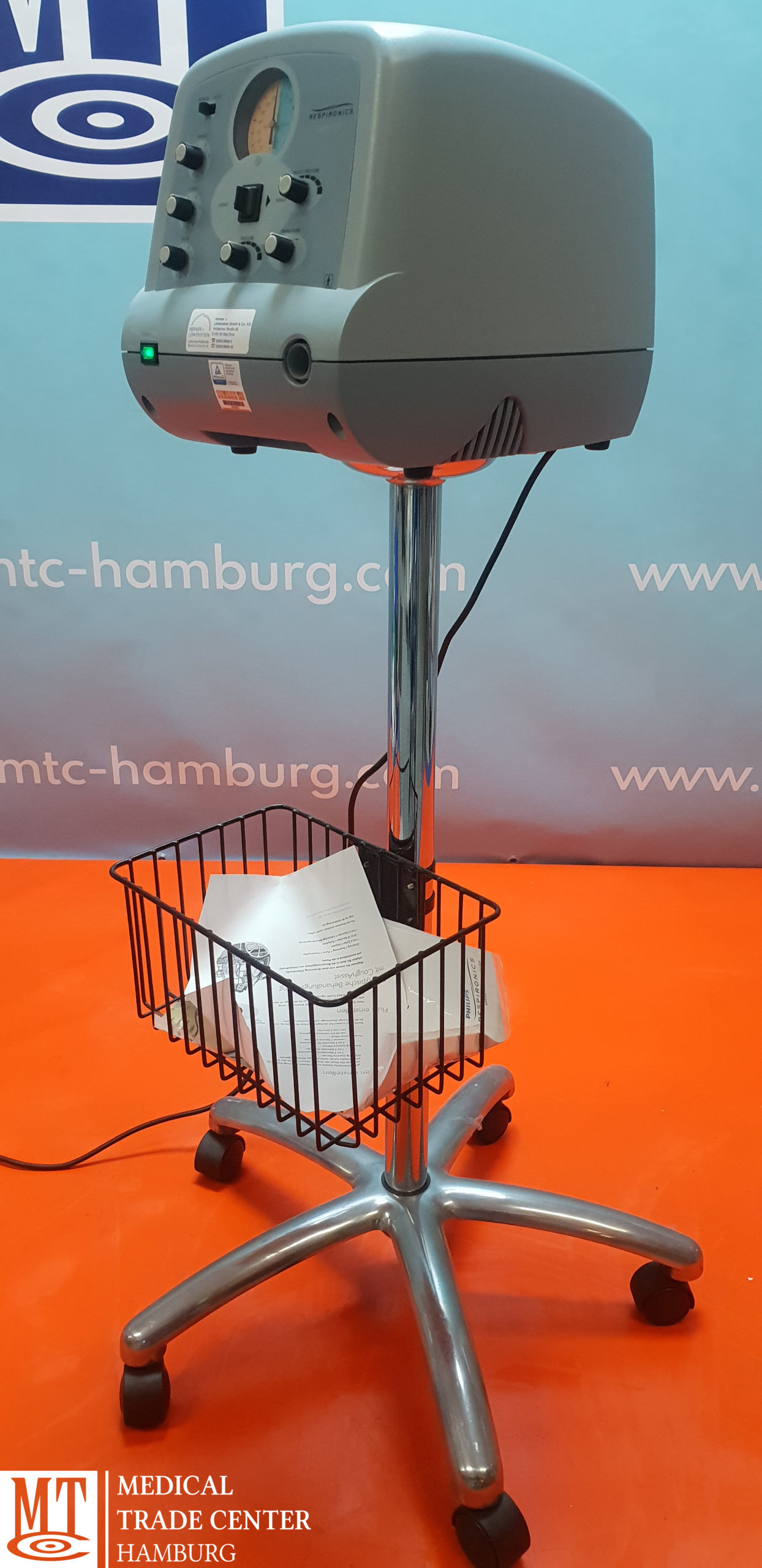 Cough Assist CA-3200 Respironics Insufflator auf fahrbarem Gestell // Rollbar