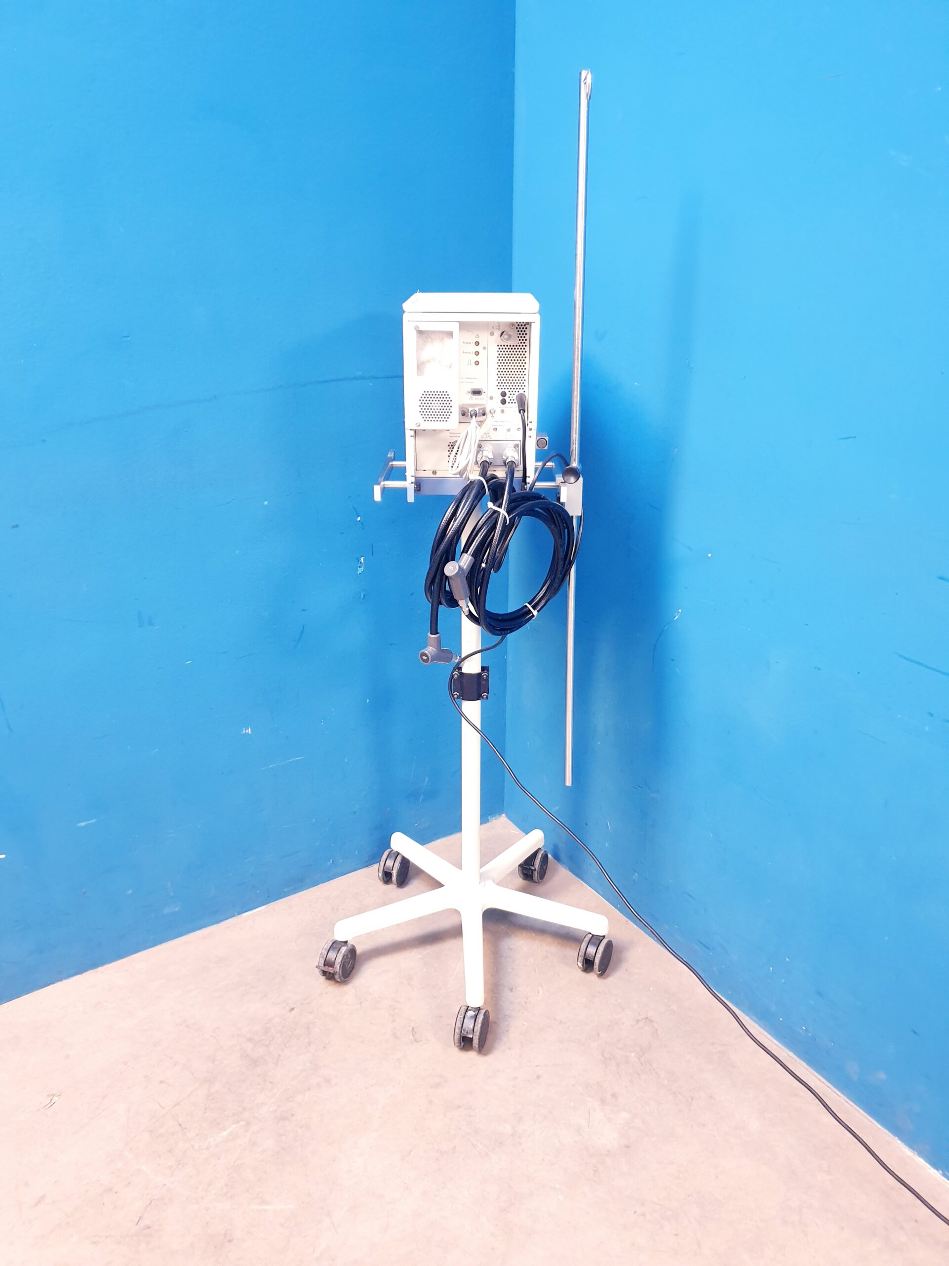 Das Dräger Babylog 8000 Plus ist ein hochentwickeltes Beatmungsgerät, das speziell für die Behandlung von Neugeborenen und Kleinkindern in der Neonatologie und auf Intensivstationen konzipiert wurde. Mit seiner flexiblen Nutzung, den anpassbaren Beatmungsmodi und einem fahrbaren Stativ ist es ein wichtiges Gerät in der intensiven Betreuung von Säuglingen mit Atemproblemen. Es sorgt für eine sichere und effektive Beatmung und bietet Ärzten und Pflegepersonal die notwendige Präzision und Kontrolle bei der Behandlung von Neugeborenen.