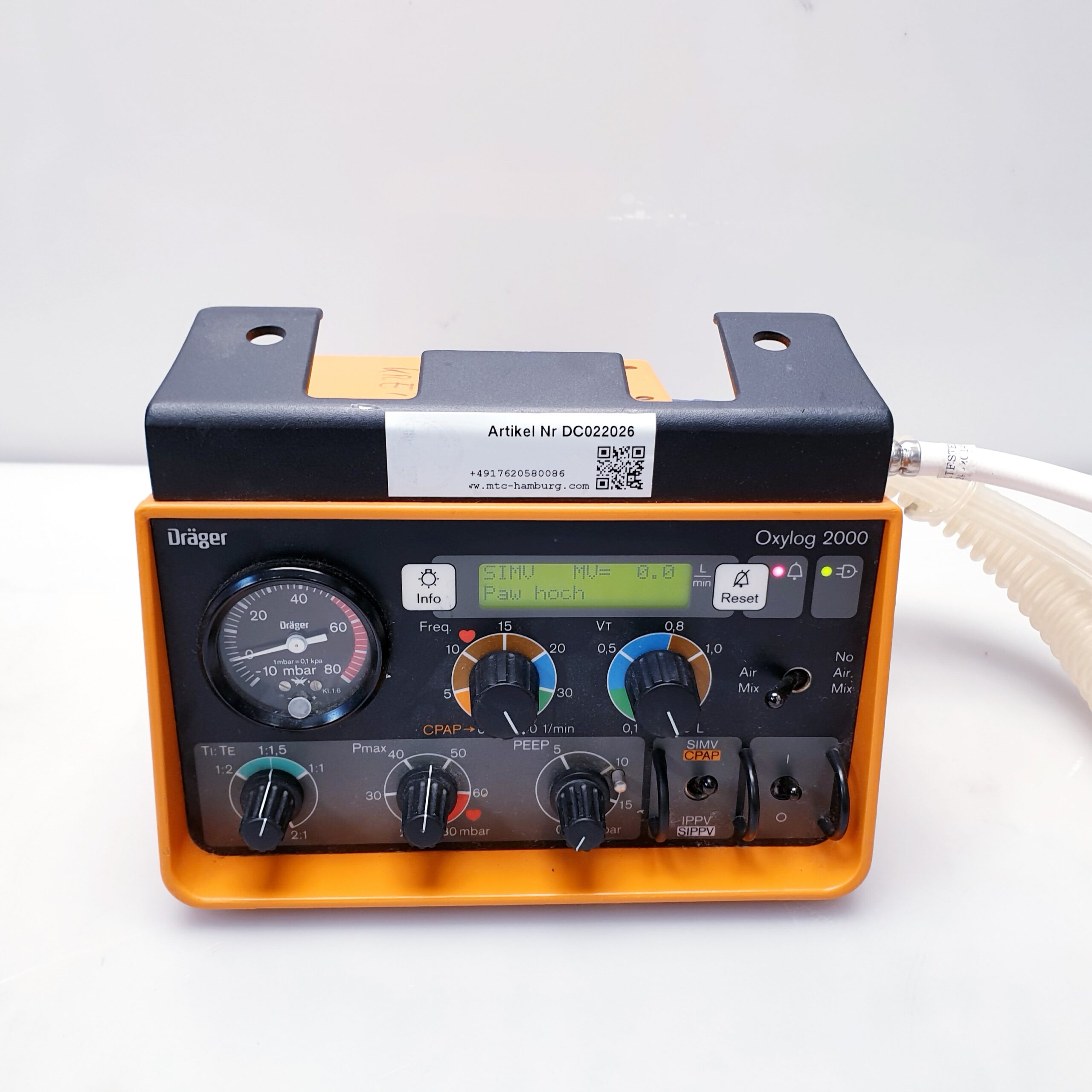 Das Dräger Oxylog 2000 ist ein bewährtes, kompaktes Beatmungsgerät, das speziell für den Einsatz im Rettungsdienst, bei Notfalleinsätzen und für den innerklinischen Transport entwickelt wurde. Es bietet sowohl volumenkontrollierte als auch unterstützte Beatmungsmodi für Erwachsene und Kinder.