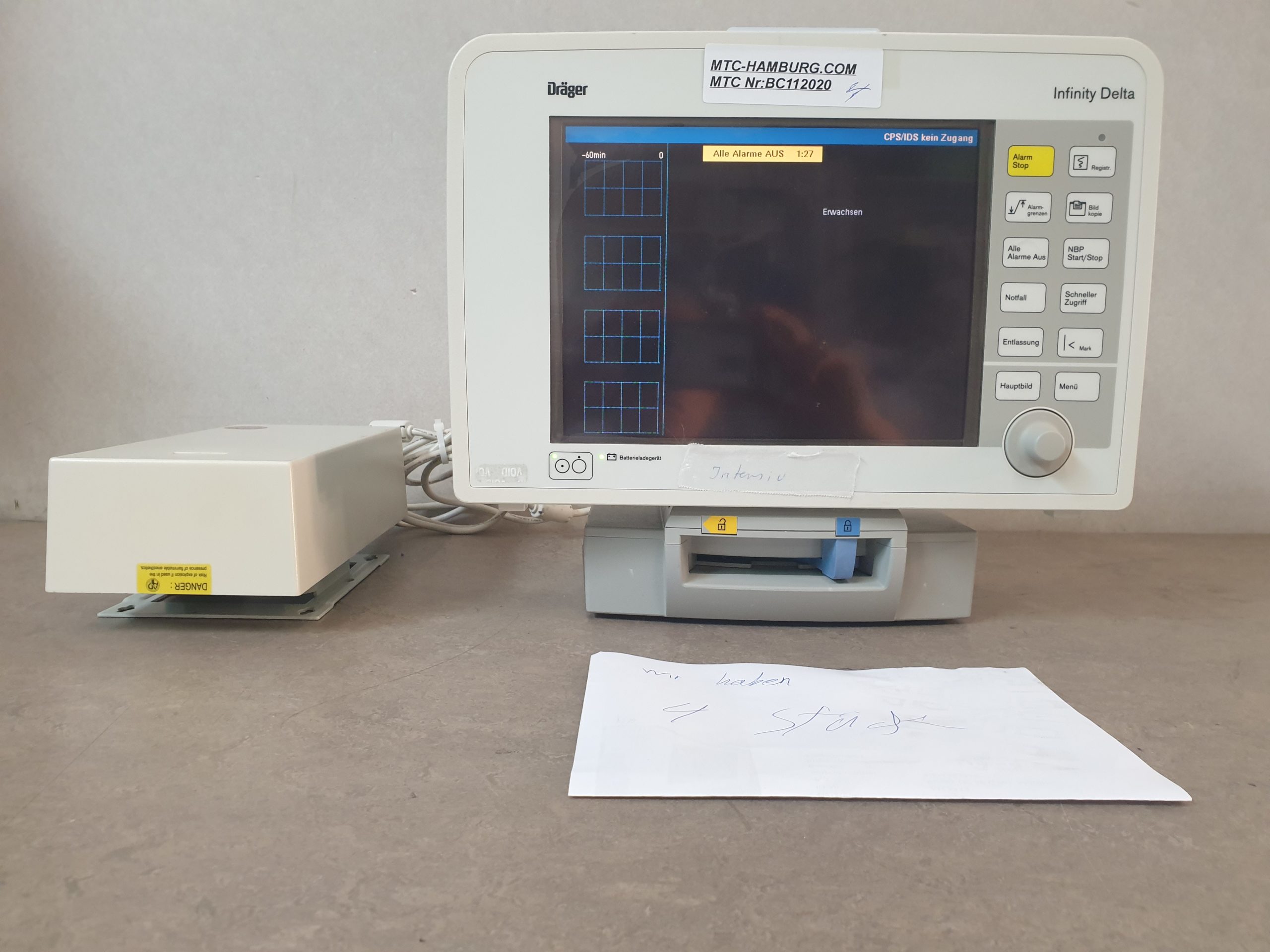 Das Dräger Infinity Delta ist ein tragbares Patientenmonitoringsystem, das in der Intensivmedizin und Anästhesie eingesetzt wird. Es bietet eine Vielzahl von Funktionen zur Überwachung von Vitalzeichen und anderen wichtigen Parametern. Hier sind einige wichtige Informationen zu den genannten Komponenten: