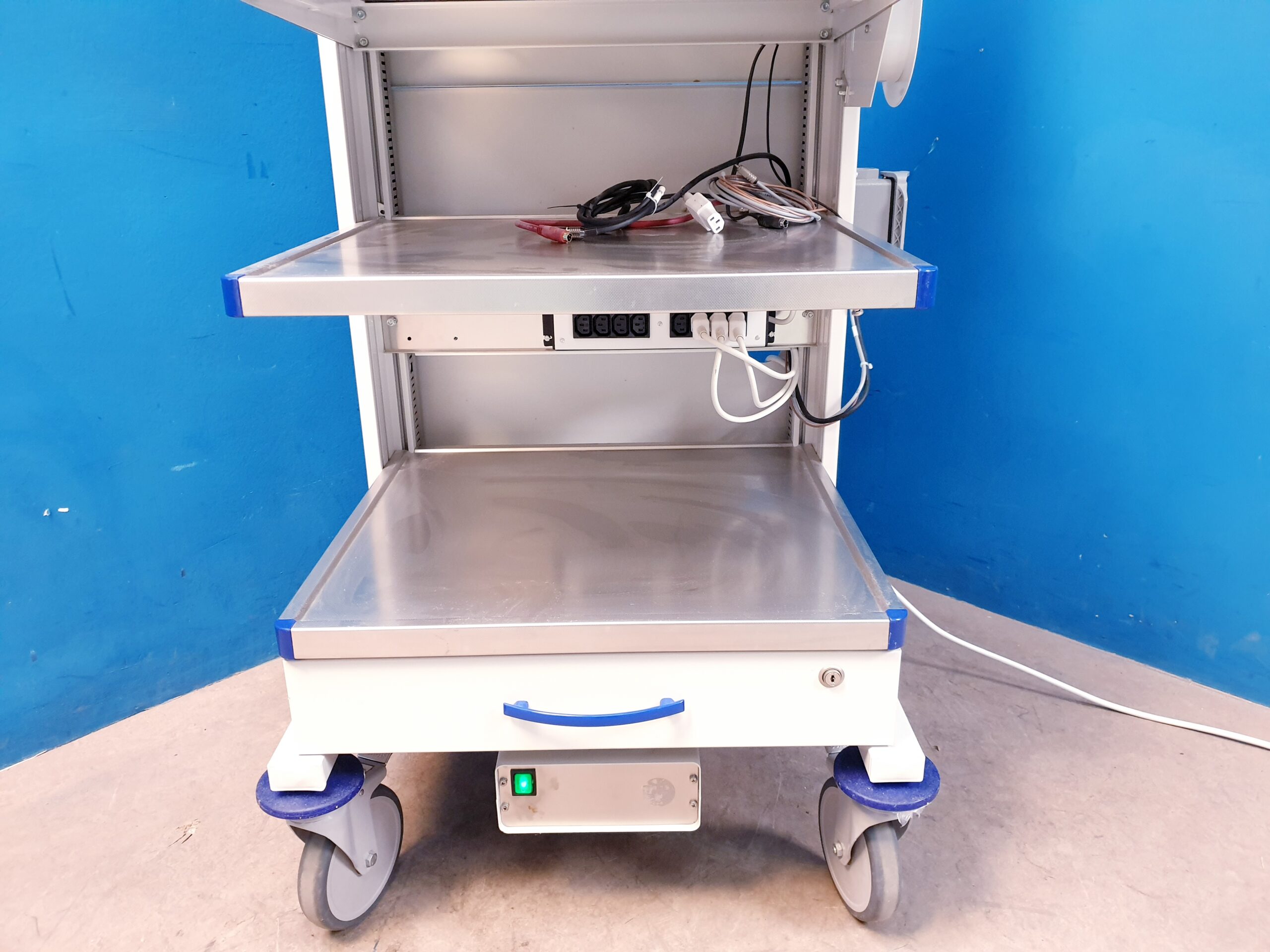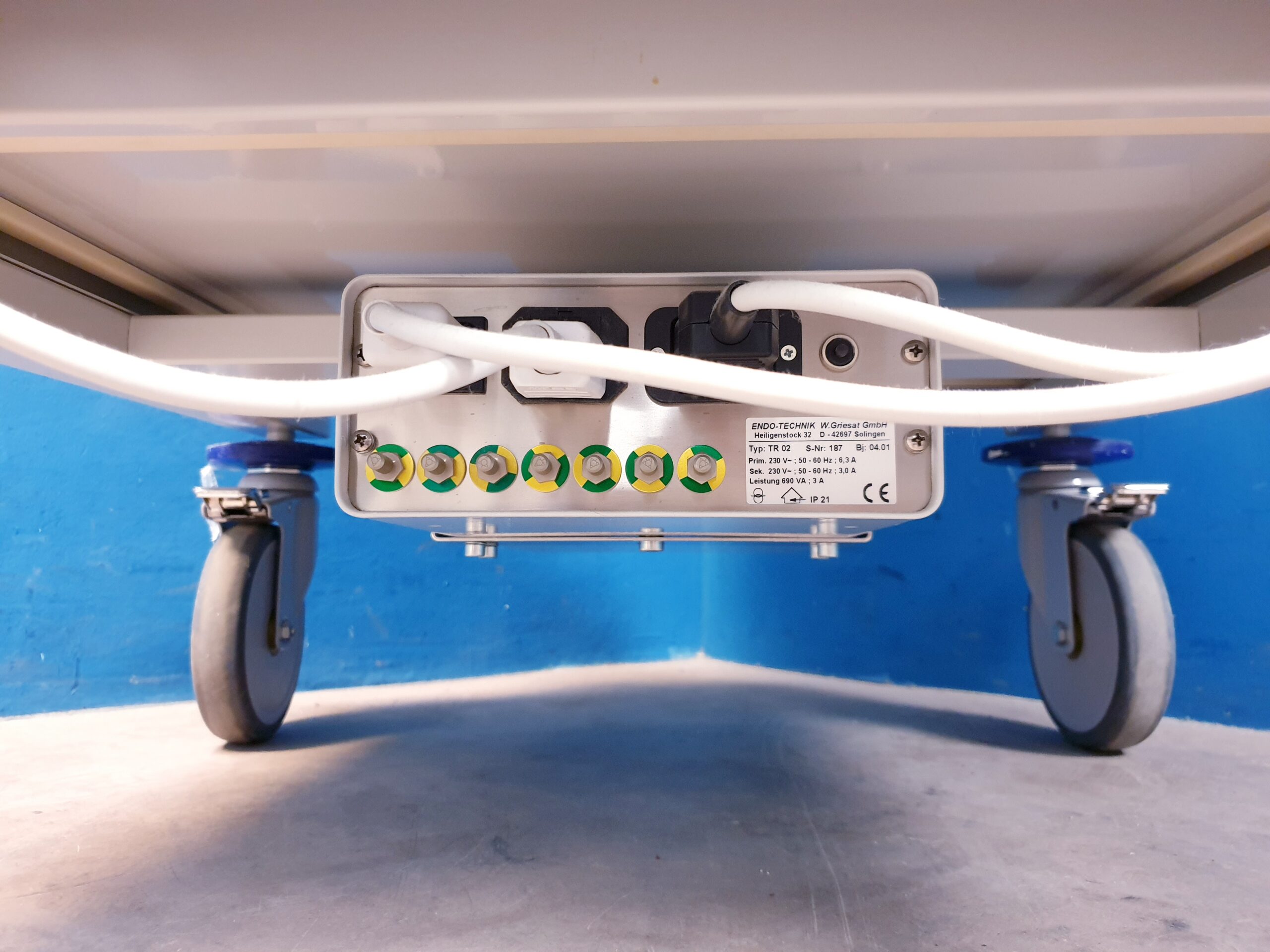Endoskopie wagen – Gerätewagen + Endo Technik TR 02 Trenntrafo Rollbarer Regalwagen