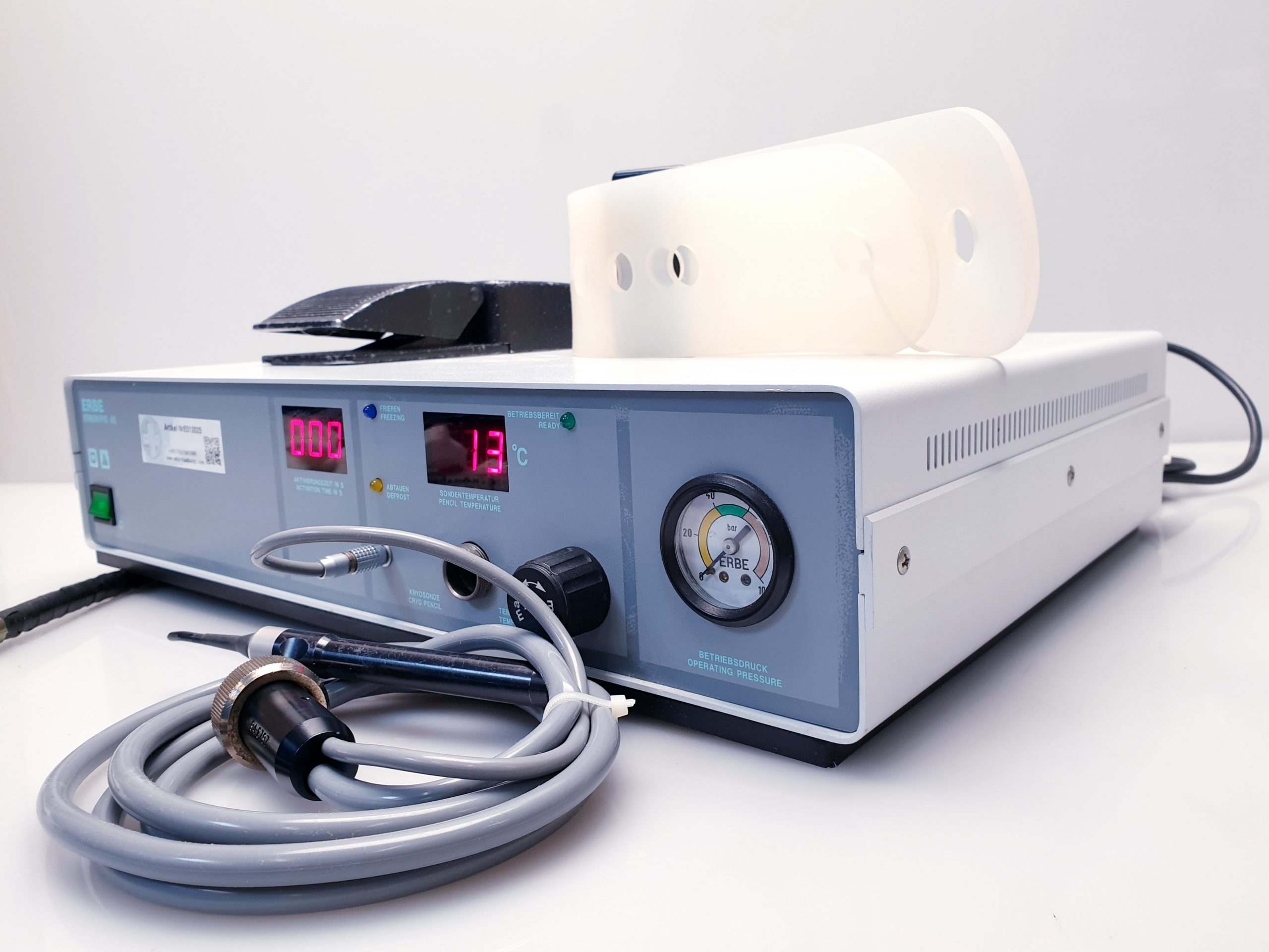 - Ergonomisches Handstück: Das Handstück ist leicht und intuitiv bedienbar, was eine komfortable Handhabung während der Operation ermöglicht und die Präzision bei der Kryobehandlung erhöht.