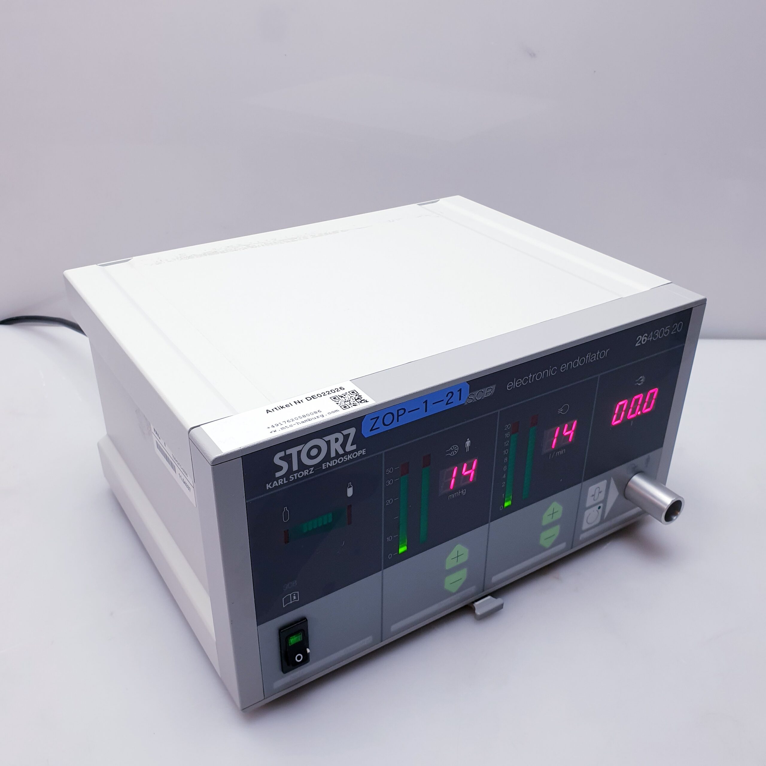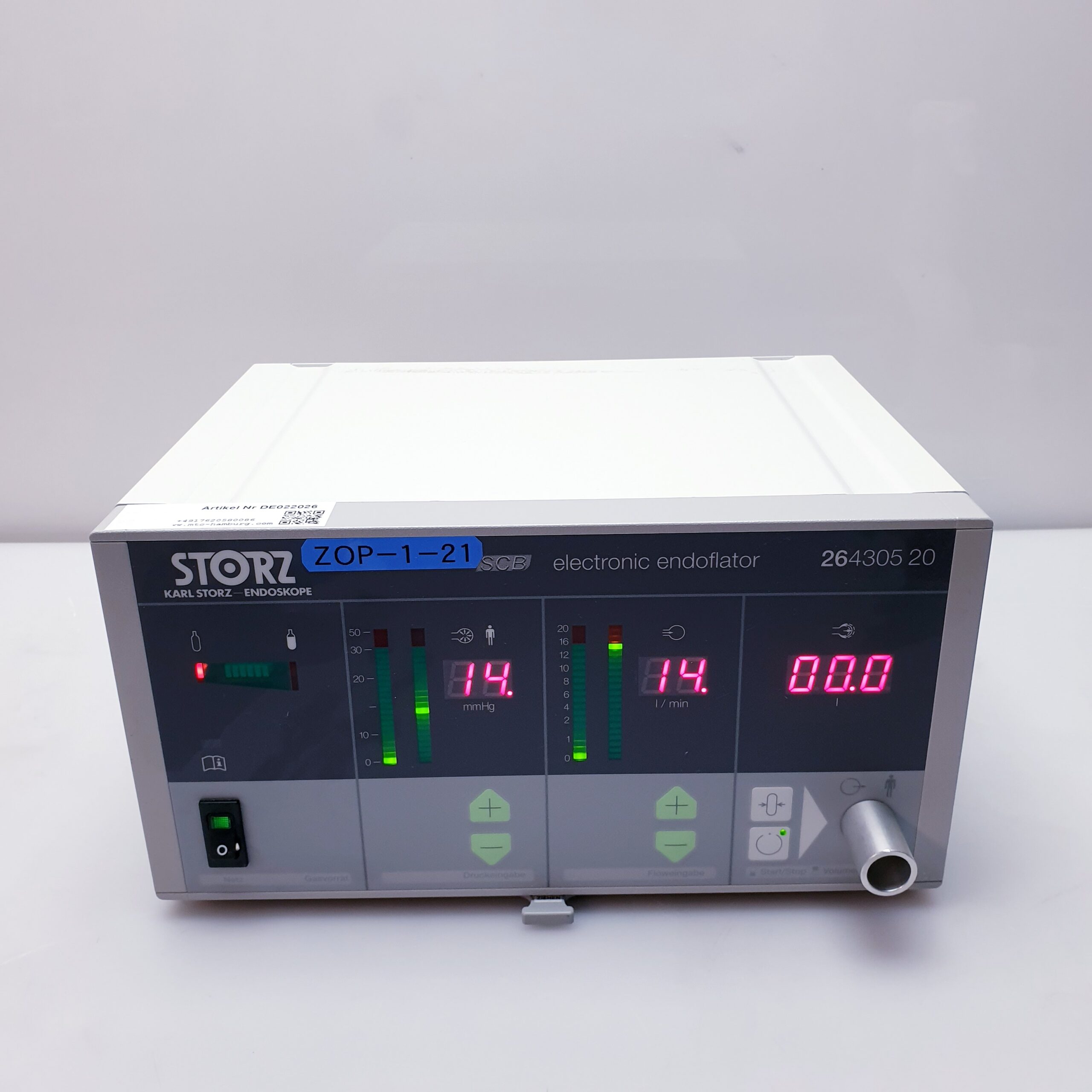 Der Karl Storz 26430520 Elektronische Endoflator Insufflator ist ein hochmodernes medizinisches Gerät, das speziell für minimalinvasive chirurgische Eingriffe entwickelt wurde. Es dient zur kontrollierten und präzisen Insufflation von Gasen, insbesondere Kohlendioxid (CO₂), in Körperhöhlen, um optimale Sichtverhältnisse und Arbeitsbedingungen während endoskopischer Verfahren zu gewährleisten.