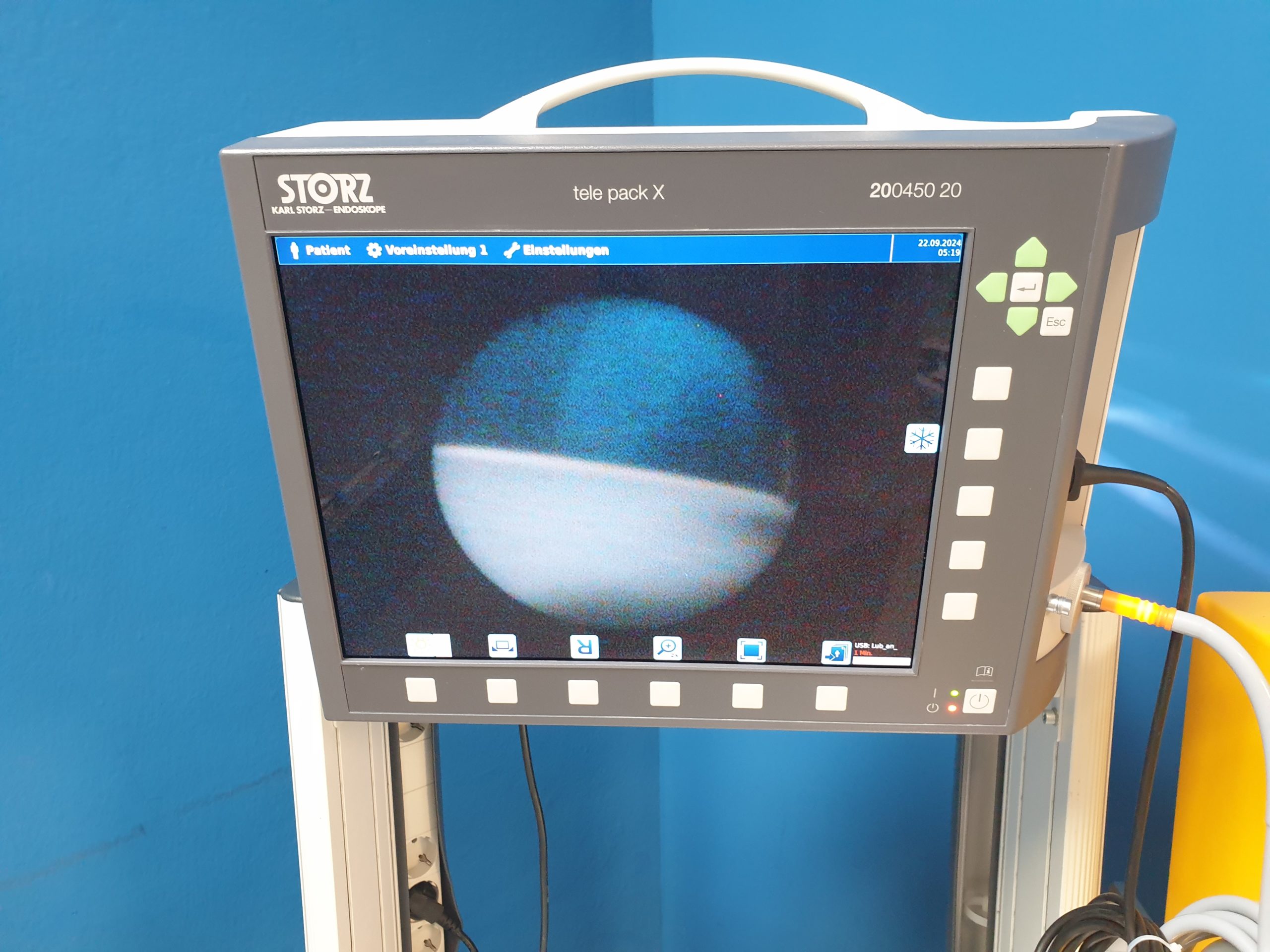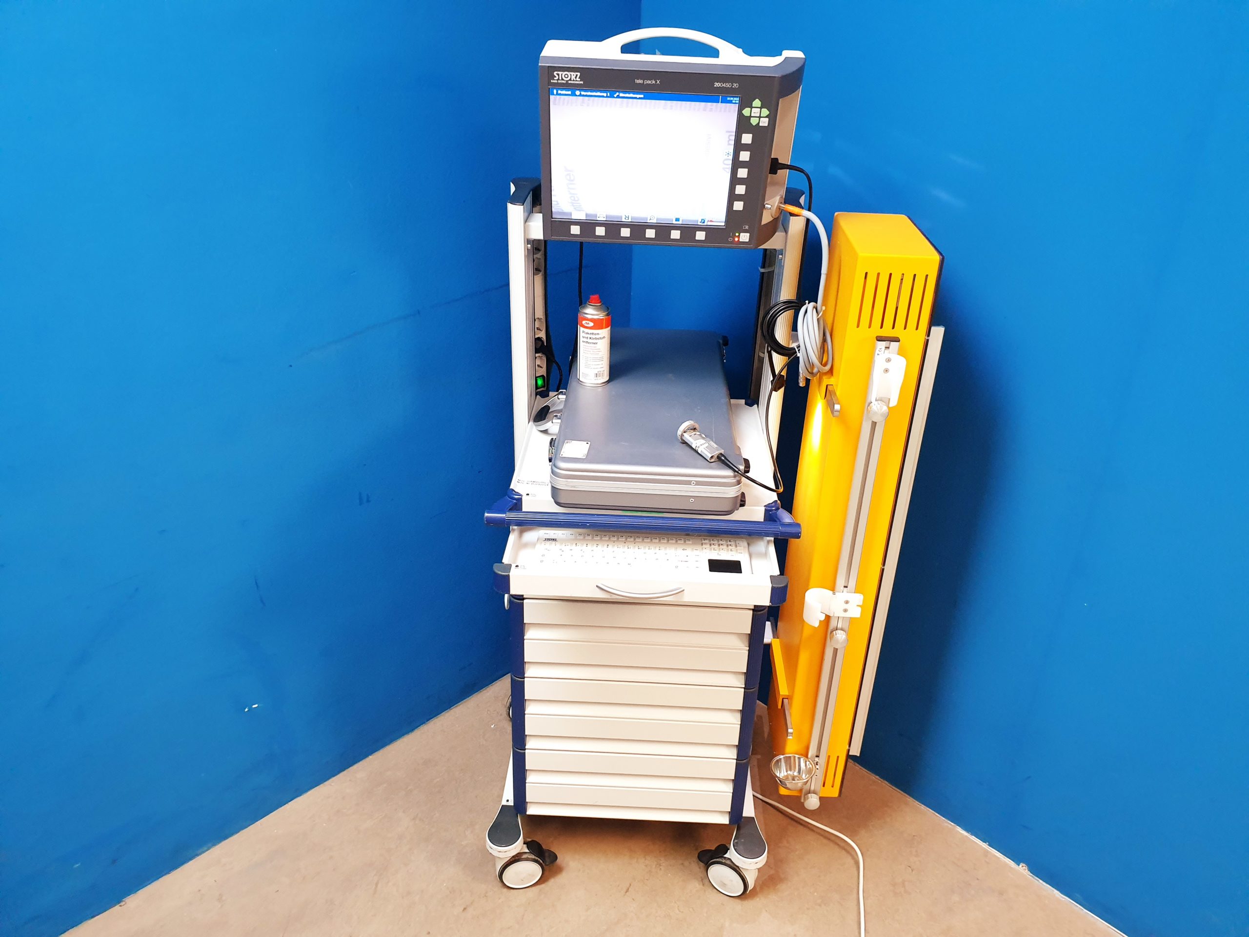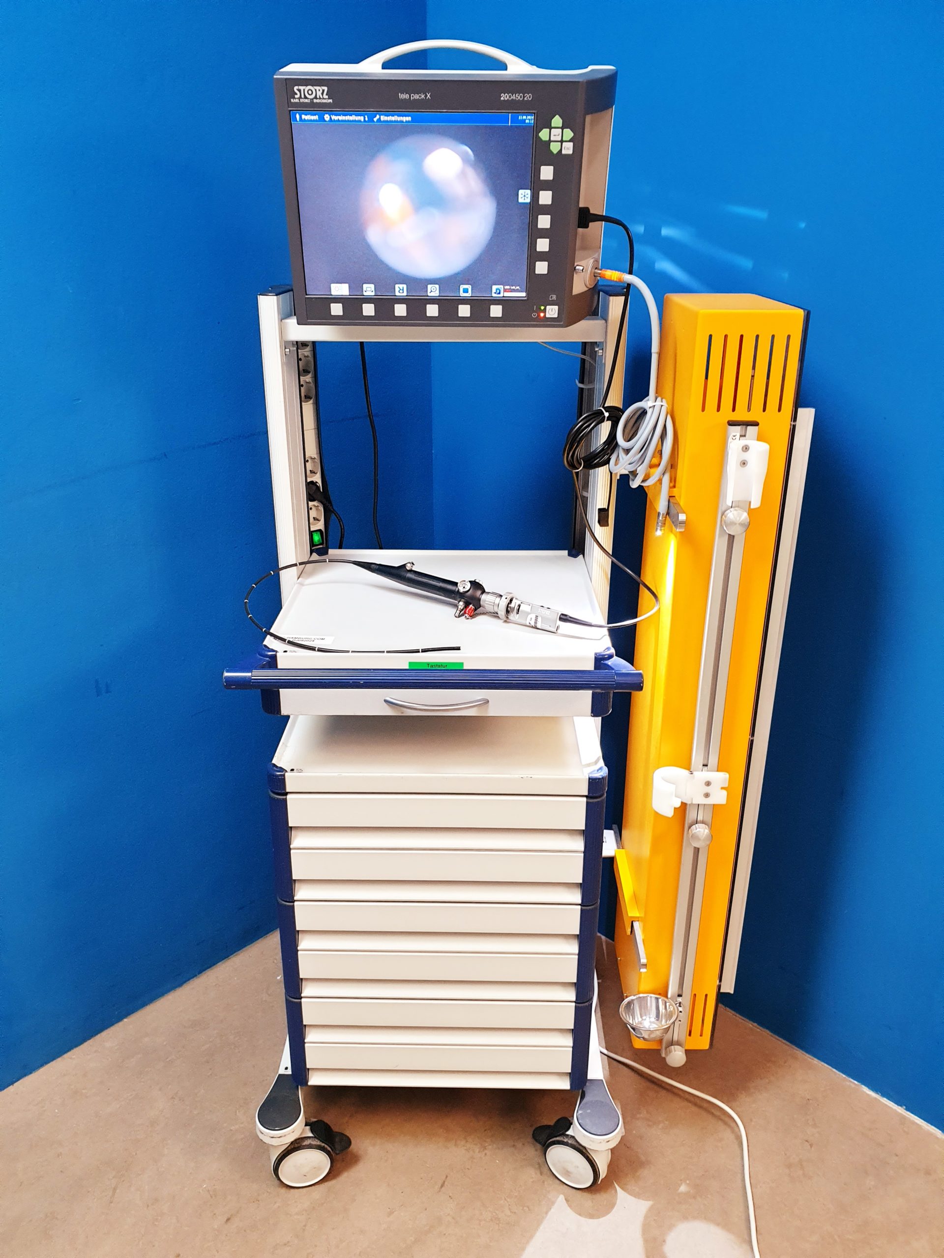Das Karl Storz Tele Pack X (Artikelnummer 200450 20) ist ein tragbares Videoendoskopiesystem, das für verschiedene medizinische Anwendungen, einschließlich der Bronchoskopie, verwendet wird. Es bietet eine kompakte und mobile Lösung für die Bildgebung und Dokumentation während endoskopischer Verfahren.