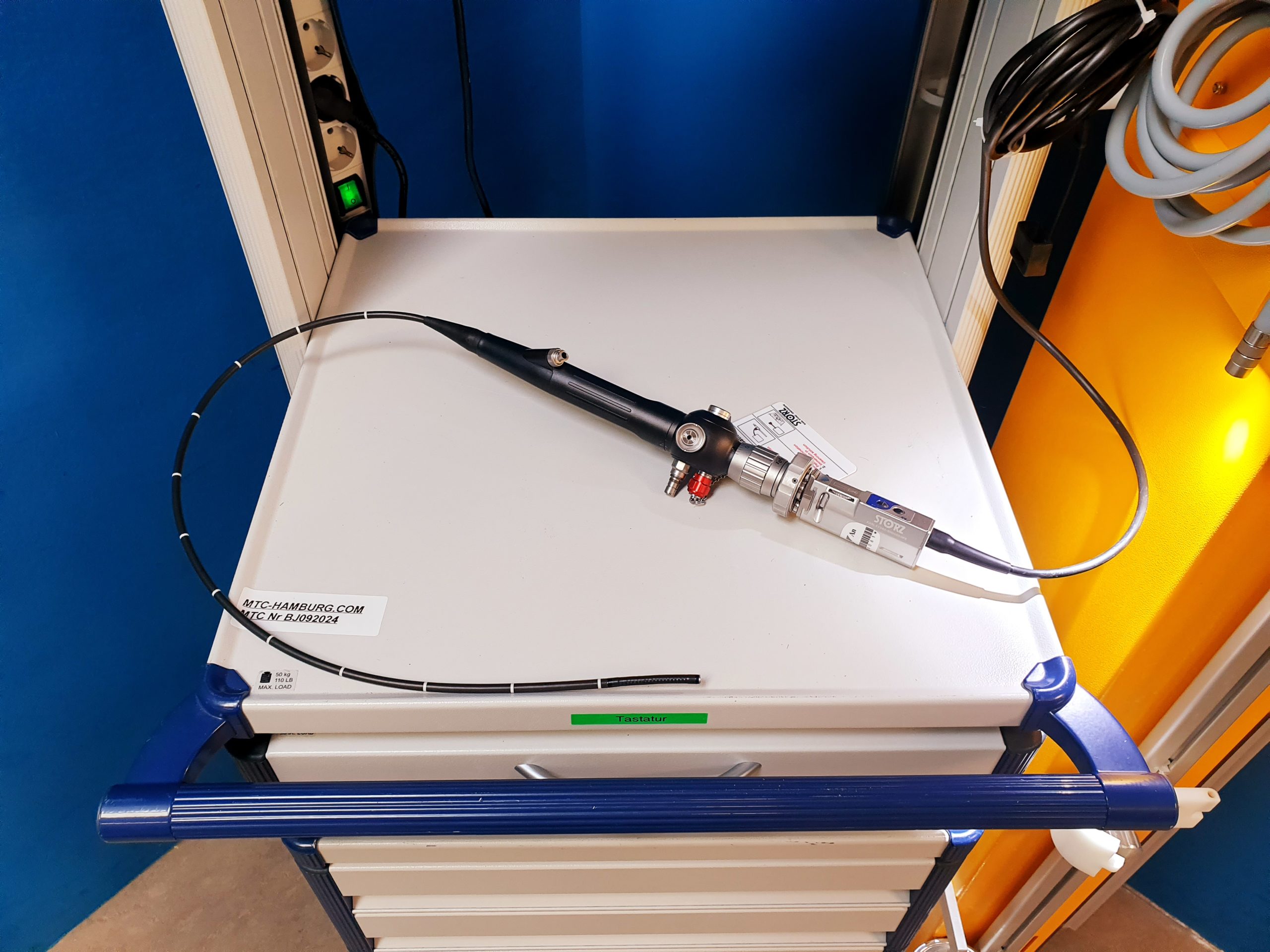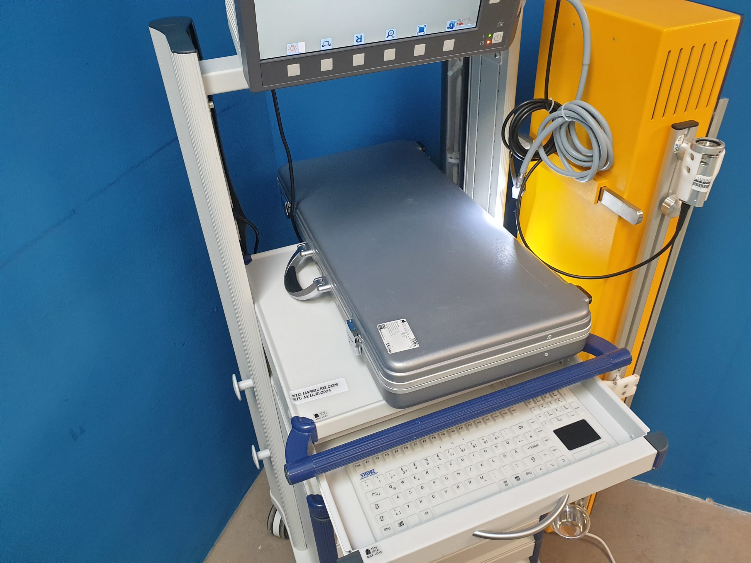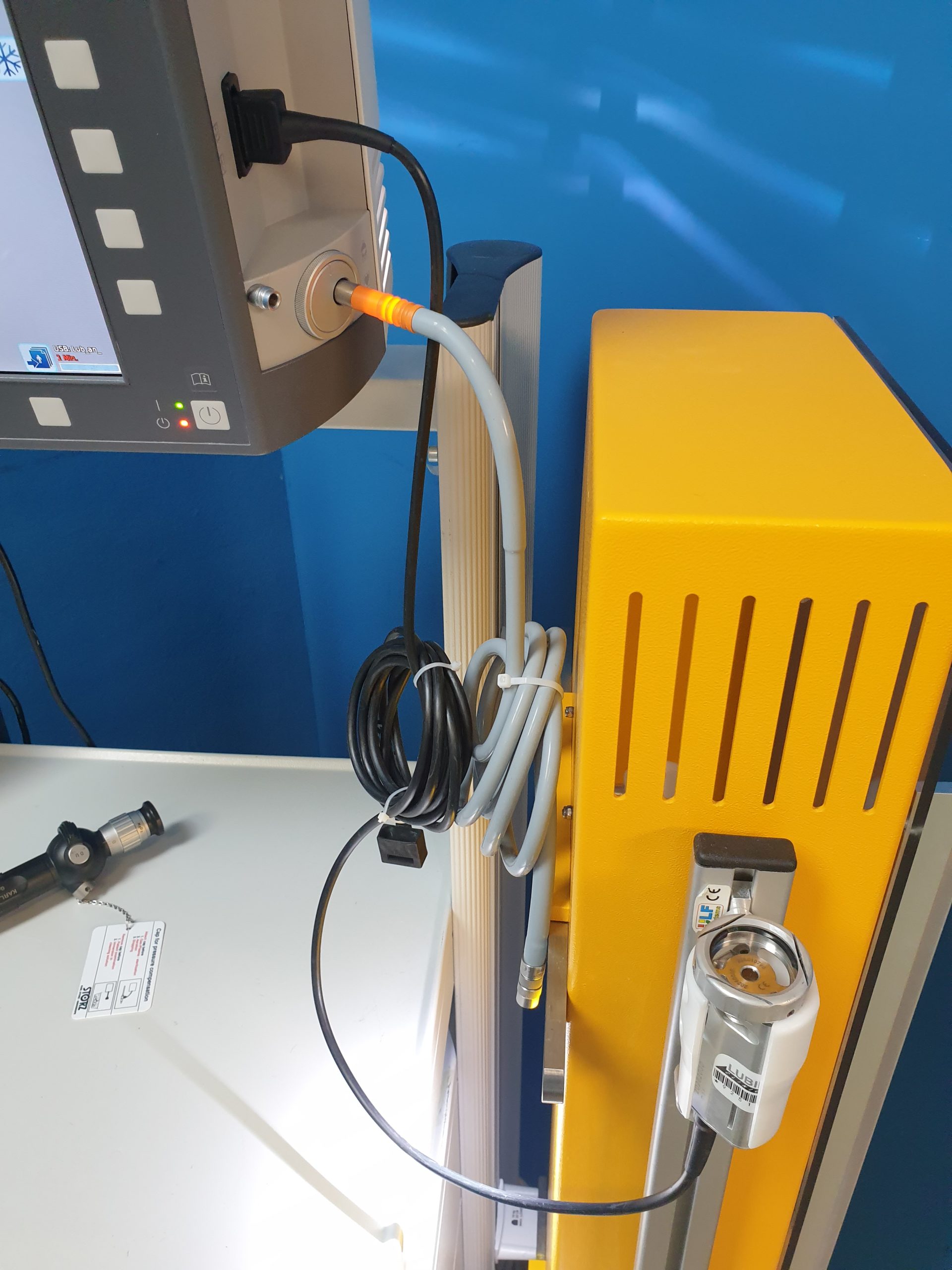 Das Karl Storz Tele Pack X (Artikelnummer 200450 20) ist ein tragbares Videoendoskopiesystem, das für verschiedene medizinische Anwendungen, einschließlich der Bronchoskopie, verwendet wird. Es bietet eine kompakte und mobile Lösung für die Bildgebung und Dokumentation während endoskopischer Verfahren.