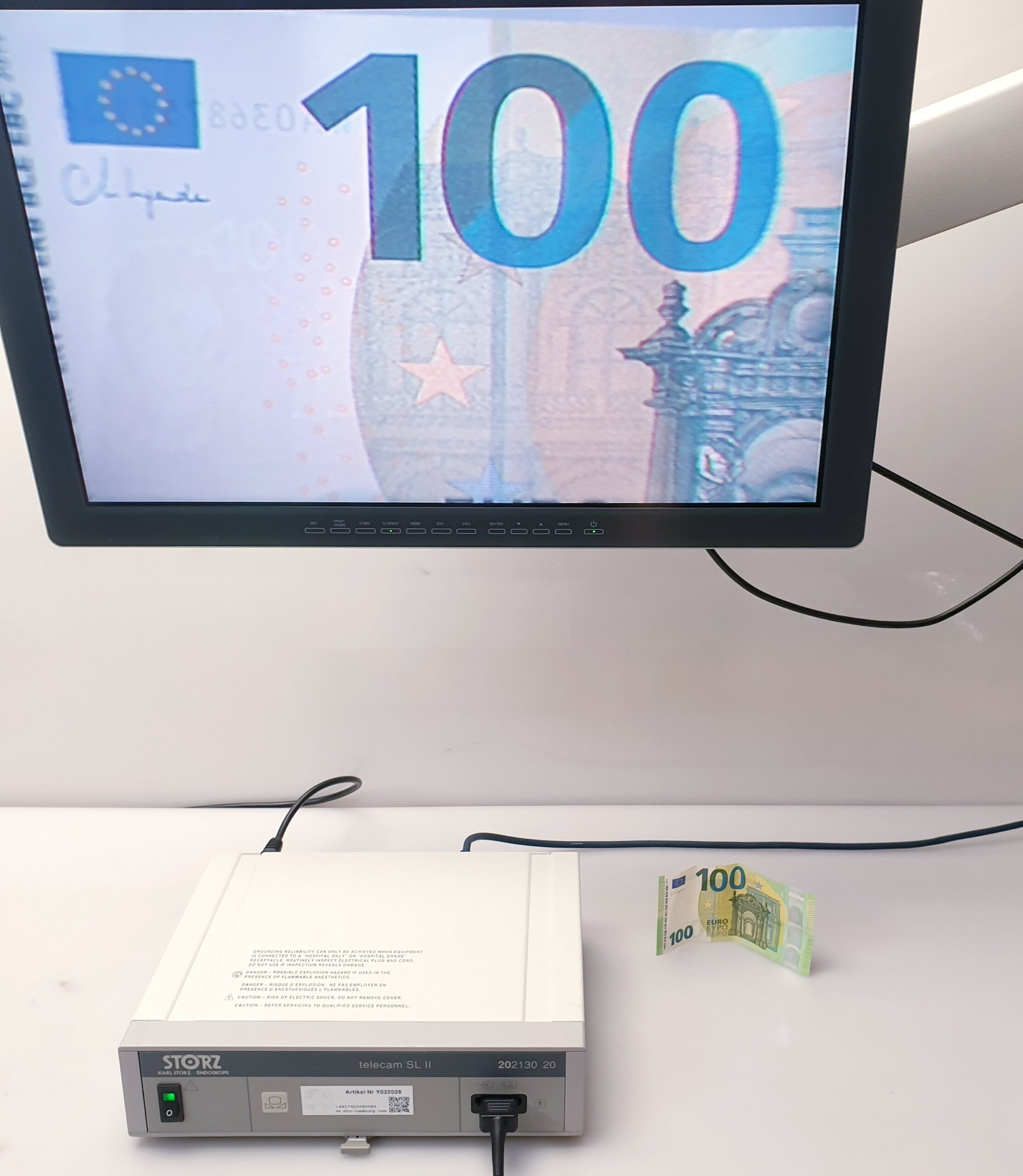- Steuereinheit (202130 20): Verarbeitet die Signale des Kamerakopfs und bietet Ausgänge für Monitore oder Aufzeichnungsgeräte (S-Video, Composite). Sie verfügt über Funktionen zum Weißabgleich und zur Helligkeitsregelung.