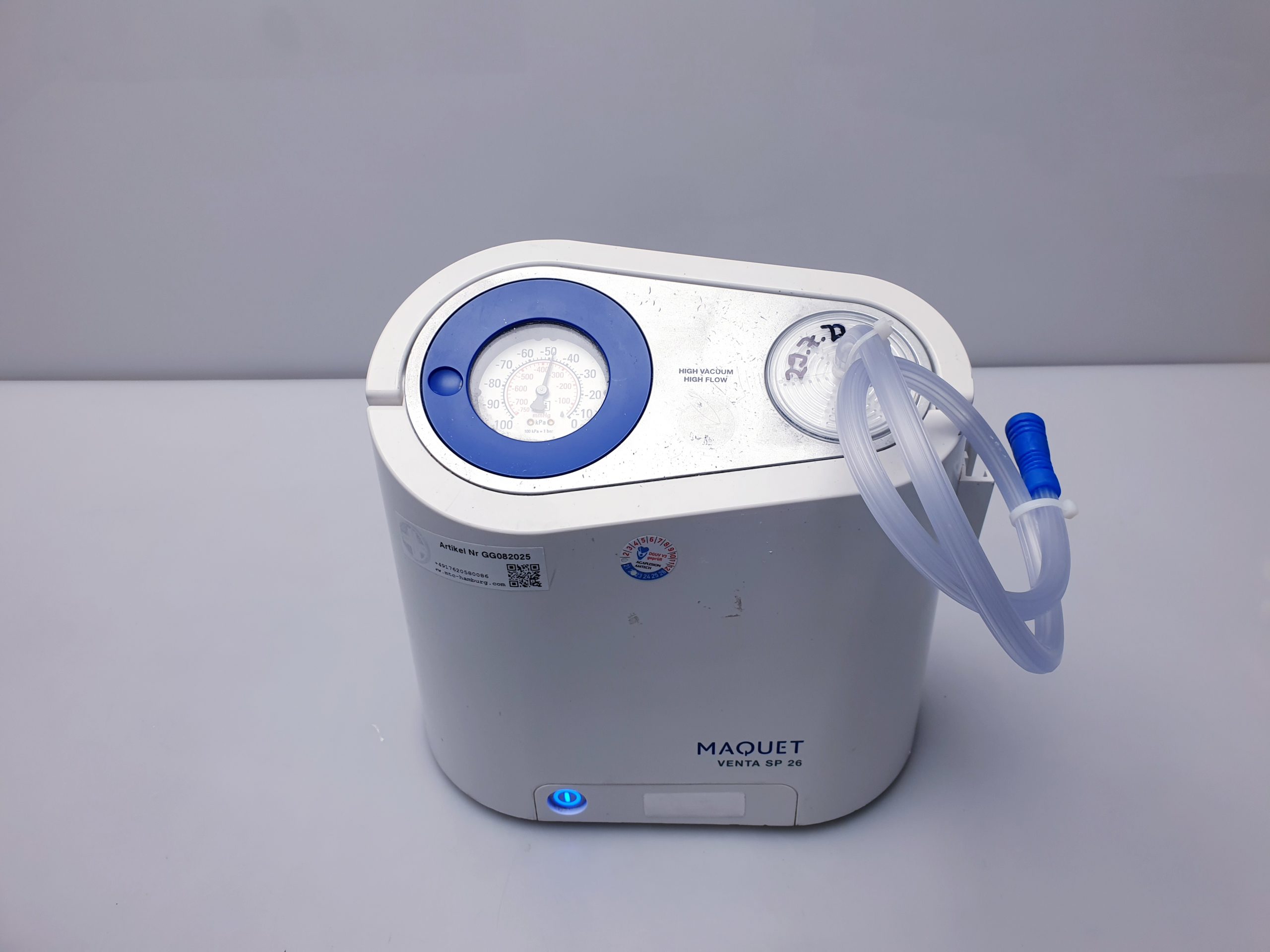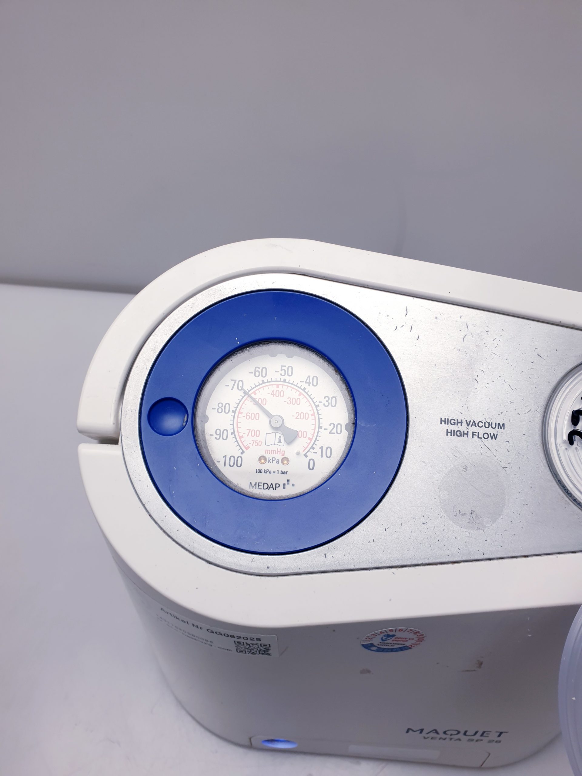 - Leistungsstarke Vakuumerzeugung: Das Maquet Venta SP 26 bietet eine konstante und präzise Vakuumregelung, die eine effiziente Absaugung bei unterschiedlichen chirurgischen Anwendungen ermöglicht.
