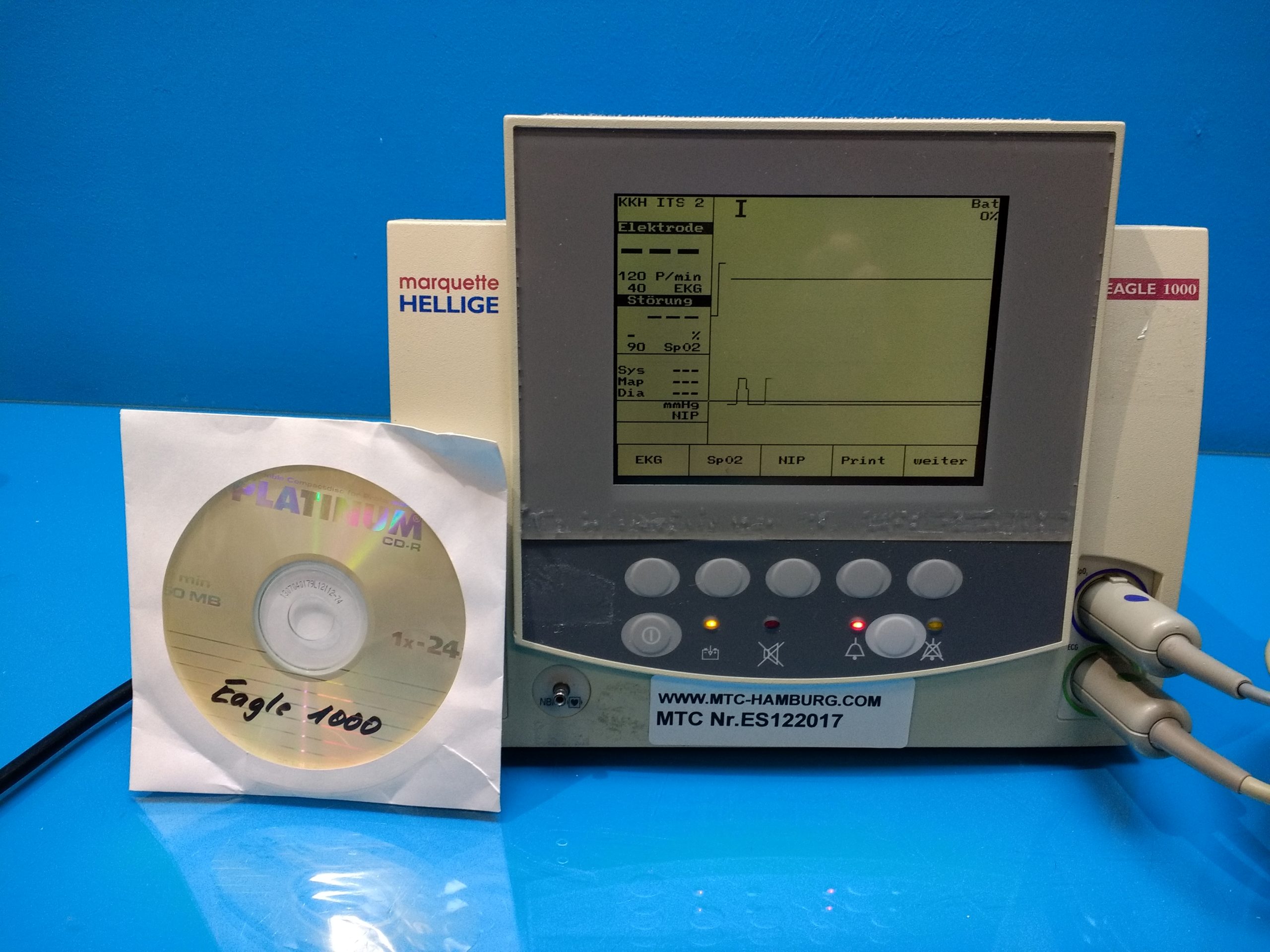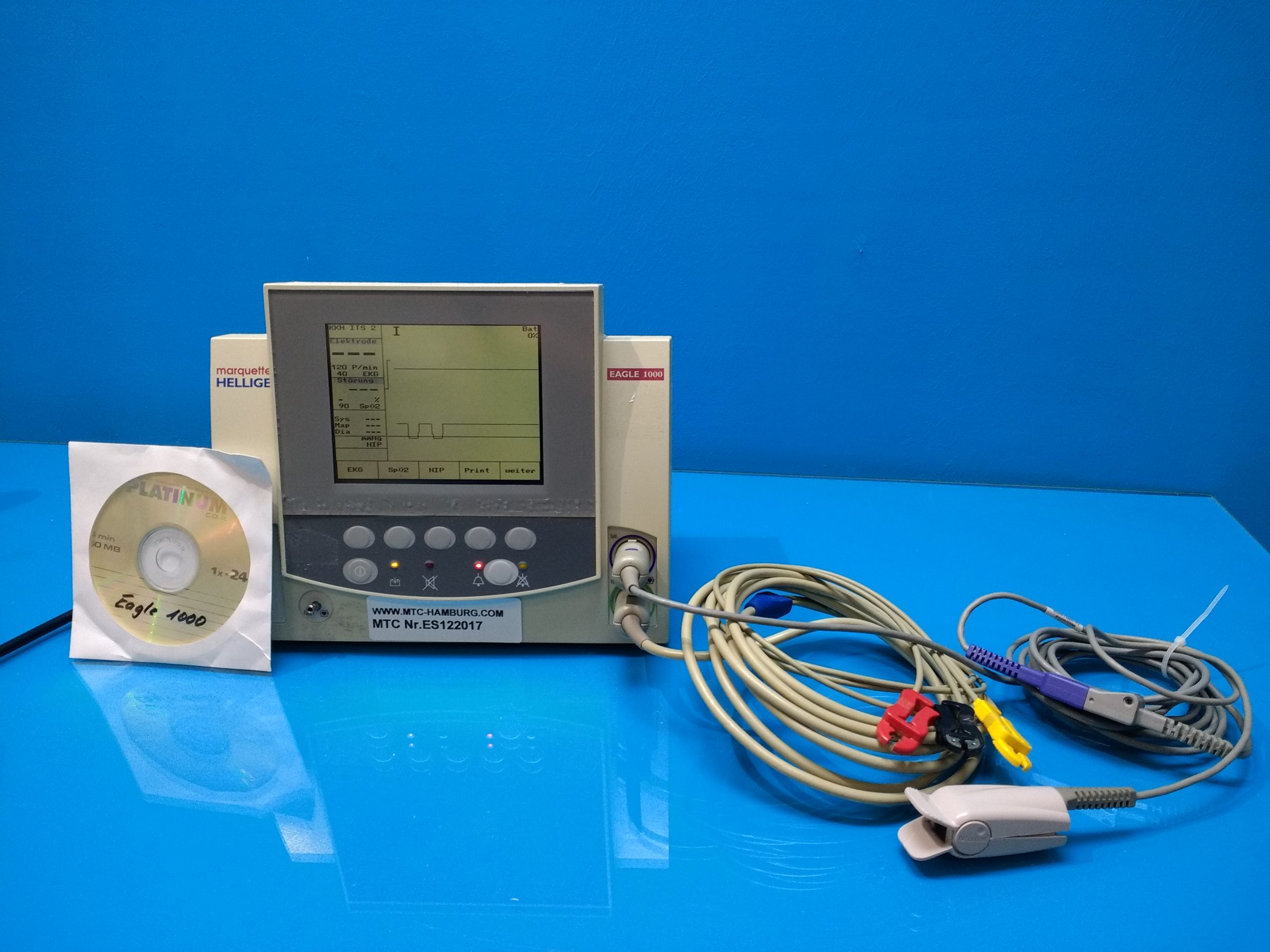 - Multifunktionale Überwachung: Der Eagle 1000 ermöglicht die simultane Überwachung verschiedener Vitalparameter wie EKG, Blutdruck, Sauerstoffsättigung (SpO2), Atemfrequenz und Temperatur.