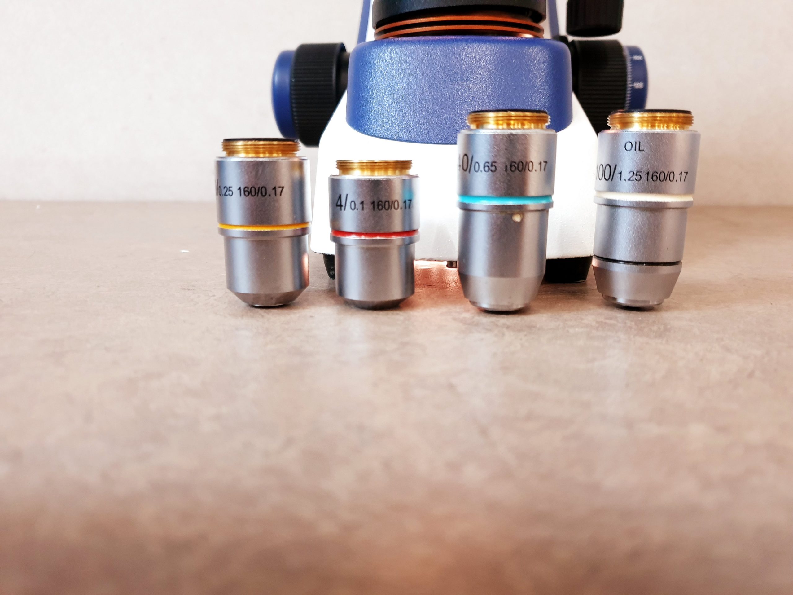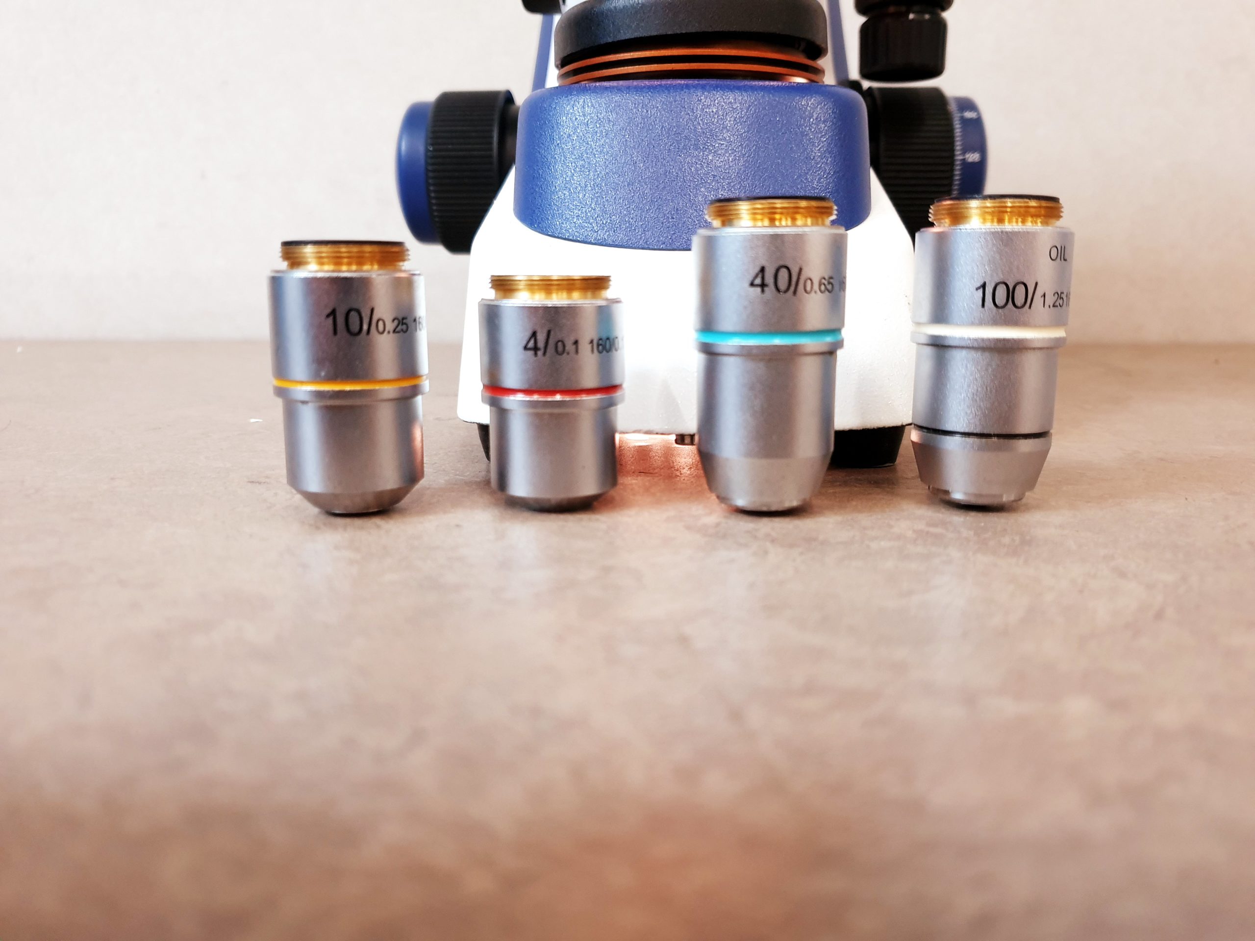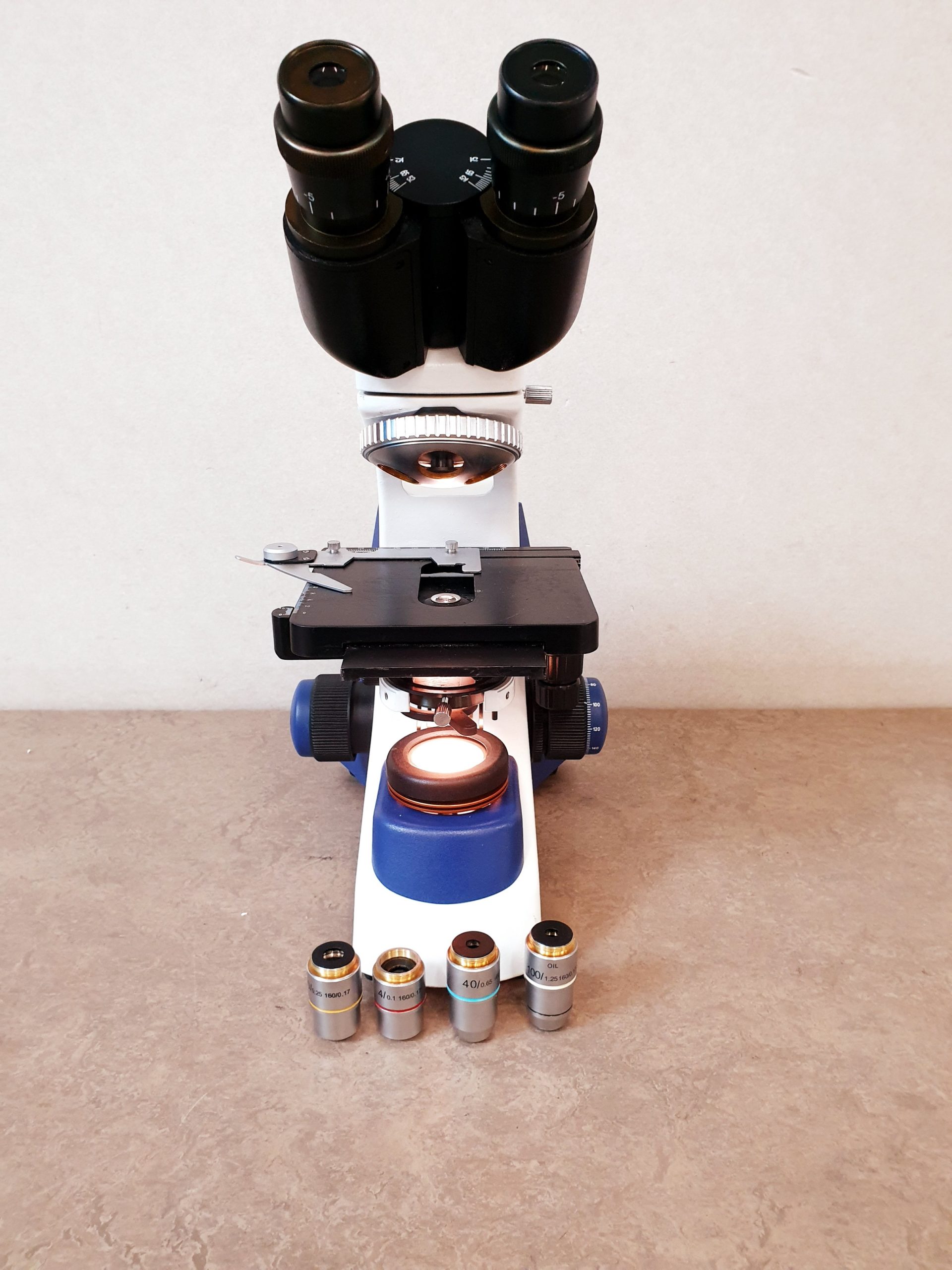 - Vier hochwertige Objektive: Das Mikroskop ist mit vier Objektiven ausgestattet, die unterschiedliche Vergrößerungen ermöglichen (in der Regel 4x, 10x, 40x und 100x Öl-Immersion). Dies gewährleistet eine flexible und vielseitige Nutzung für verschiedenste Anwendungen.