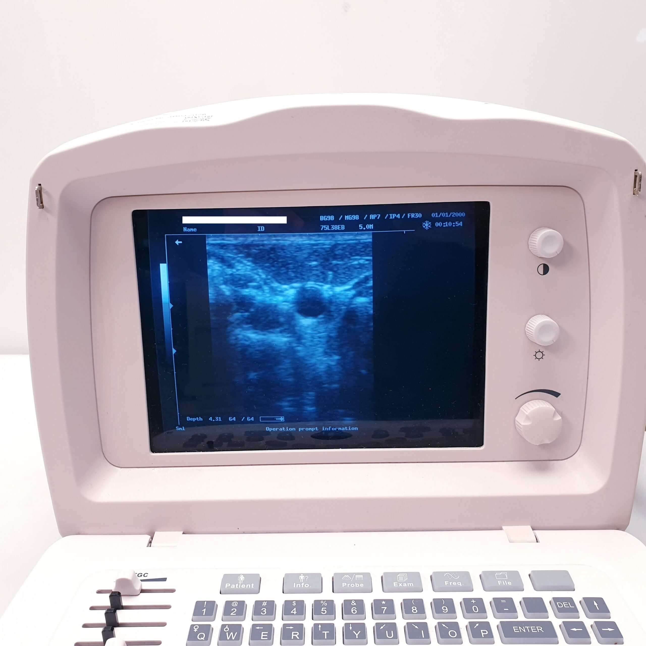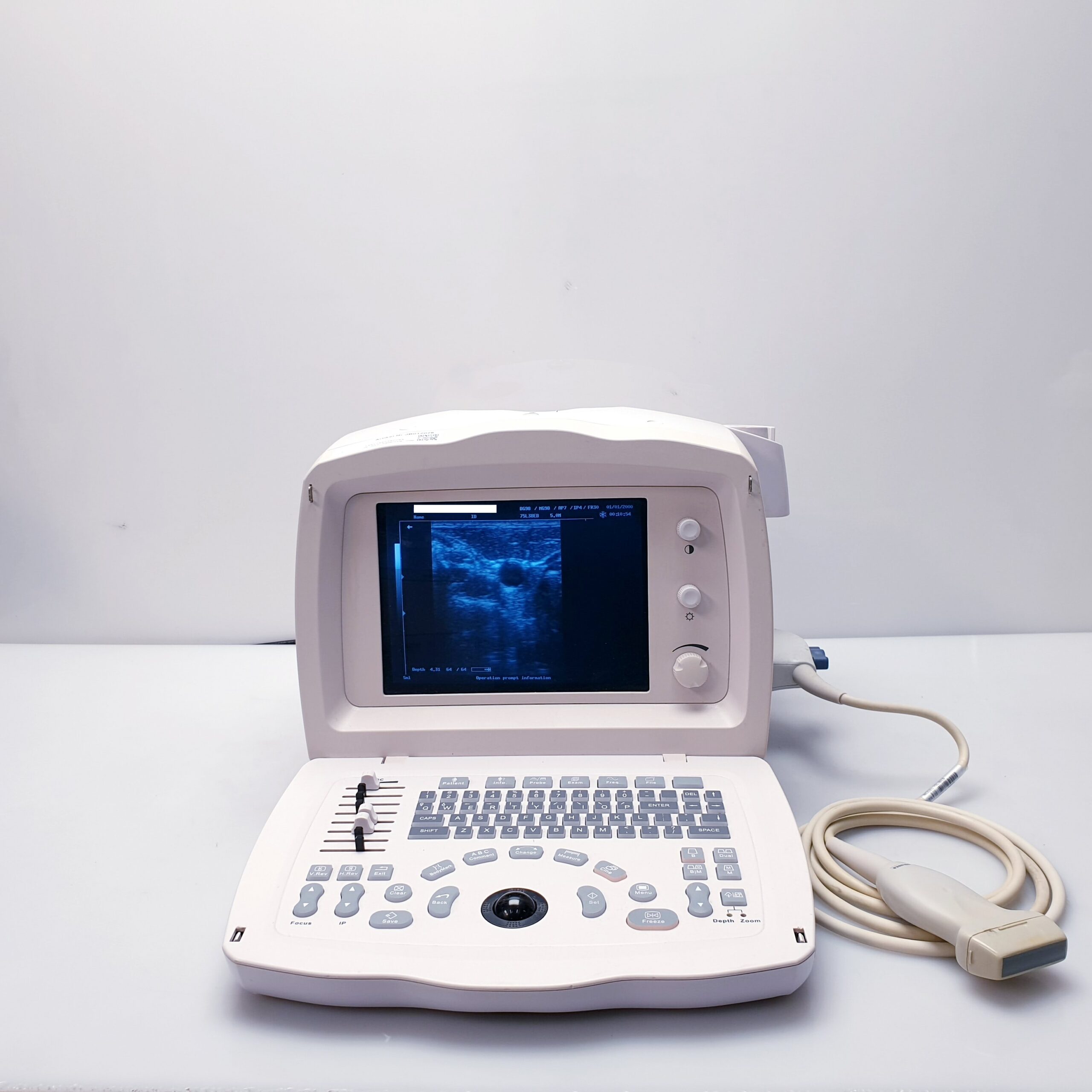 Das Mindray DP-2200 Plus ist ein kompaktes, digitales Schwarz-Weiß-Ultraschallsystem, das häufig mit einer 7.5 MHz Linear-Sonde (z. B. Modell 75L38EB) für oberflächennahe Untersuchungen (Gefäße, kleine Organe) eingesetzt wird.