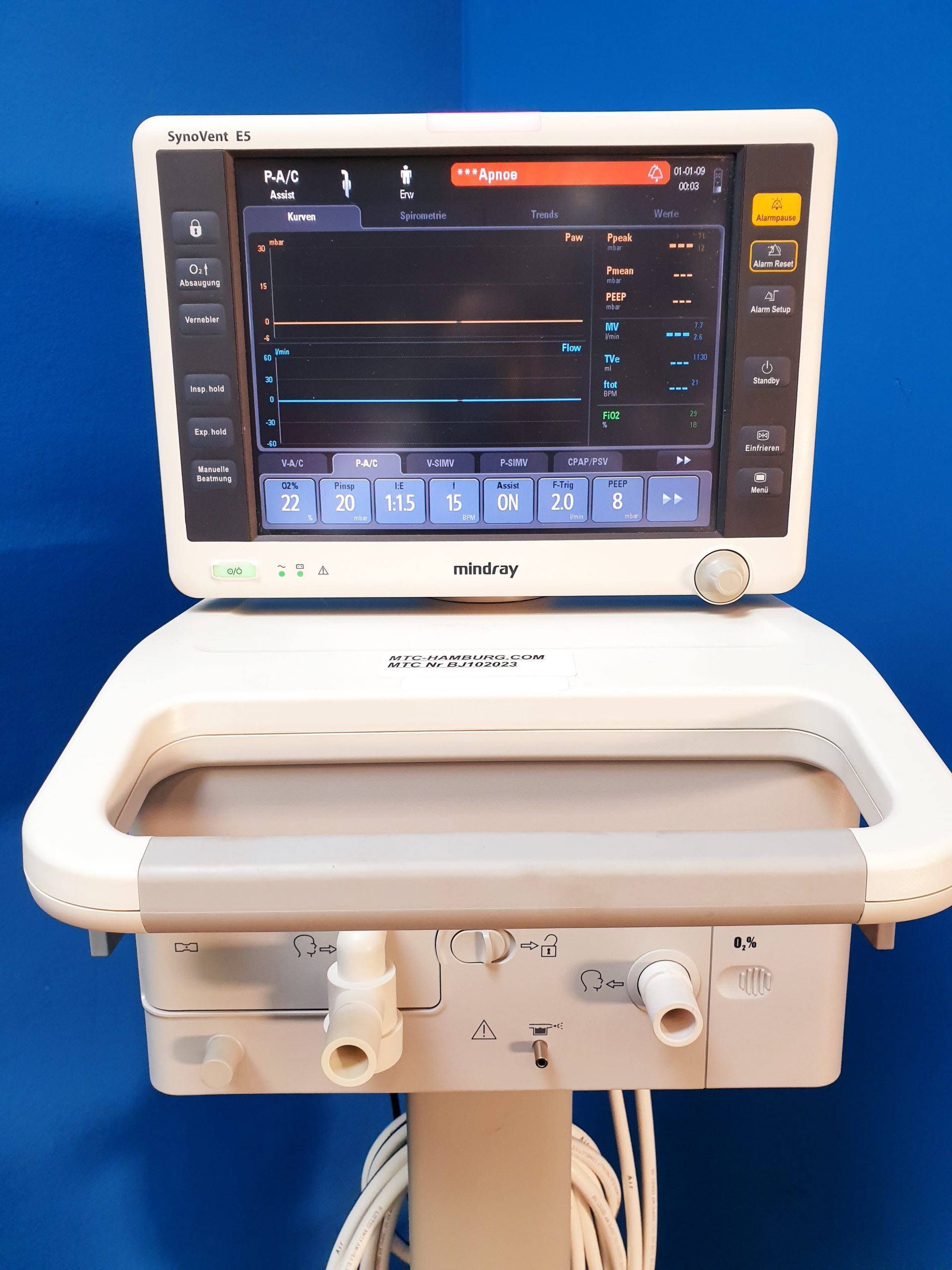 Der Mindray Synovent E5 Ventilator ist ein hochmodernes Beatmungsgerät, das speziell für den Einsatz in der Intensivmedizin und auf der Notfallstation entwickelt wurde. Es bietet eine Vielzahl von Beatmungsmodi und eine benutzerfreundliche Bedienoberfläche, die eine präzise und individuelle Unterstützung der Atemfunktion bei Patienten aller Altersgruppen ermöglicht.
