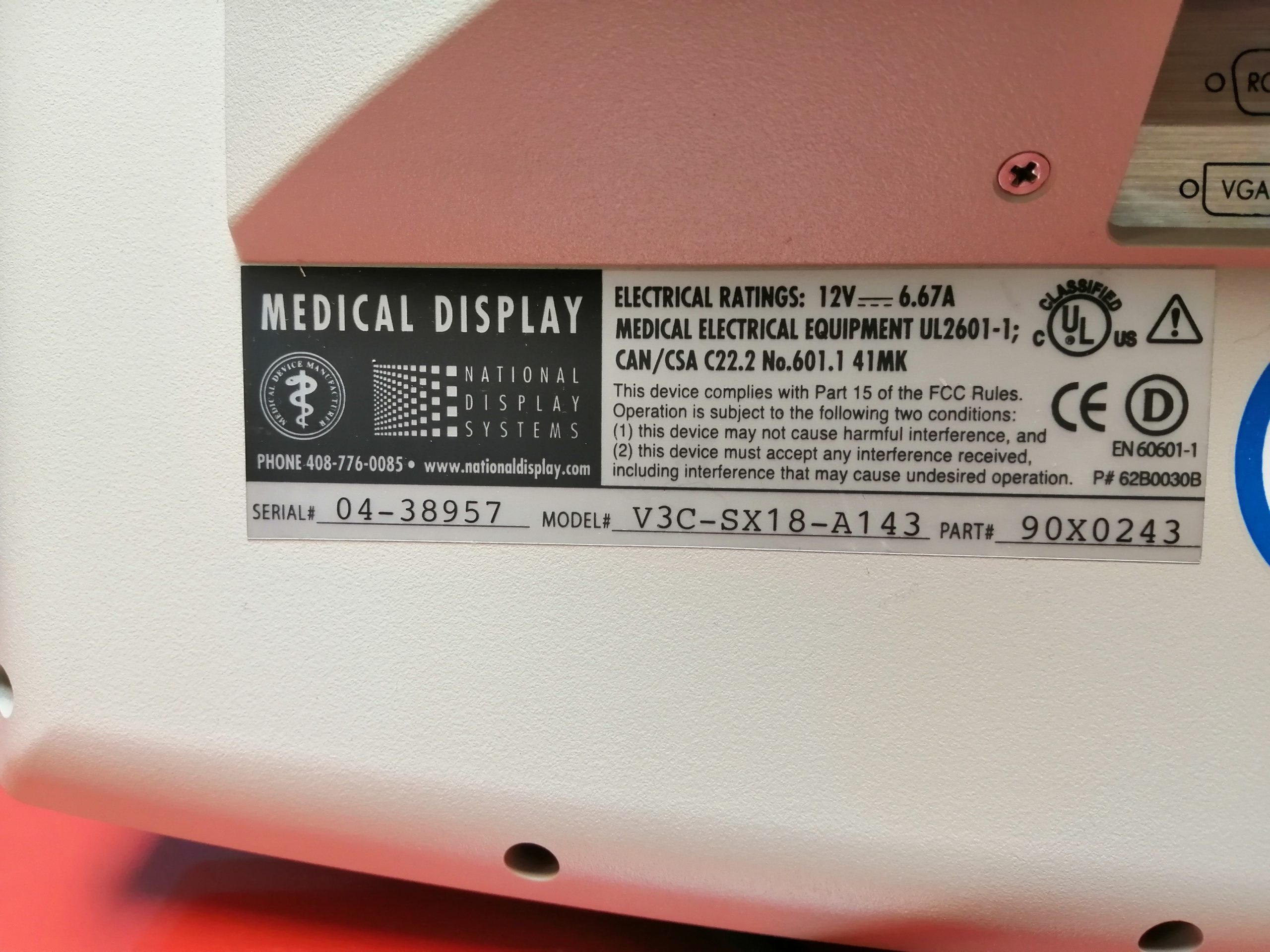 NDS V3C-SX18-A143 LCD Medical Display Monitor 18 video endoscopy mit Netzteil