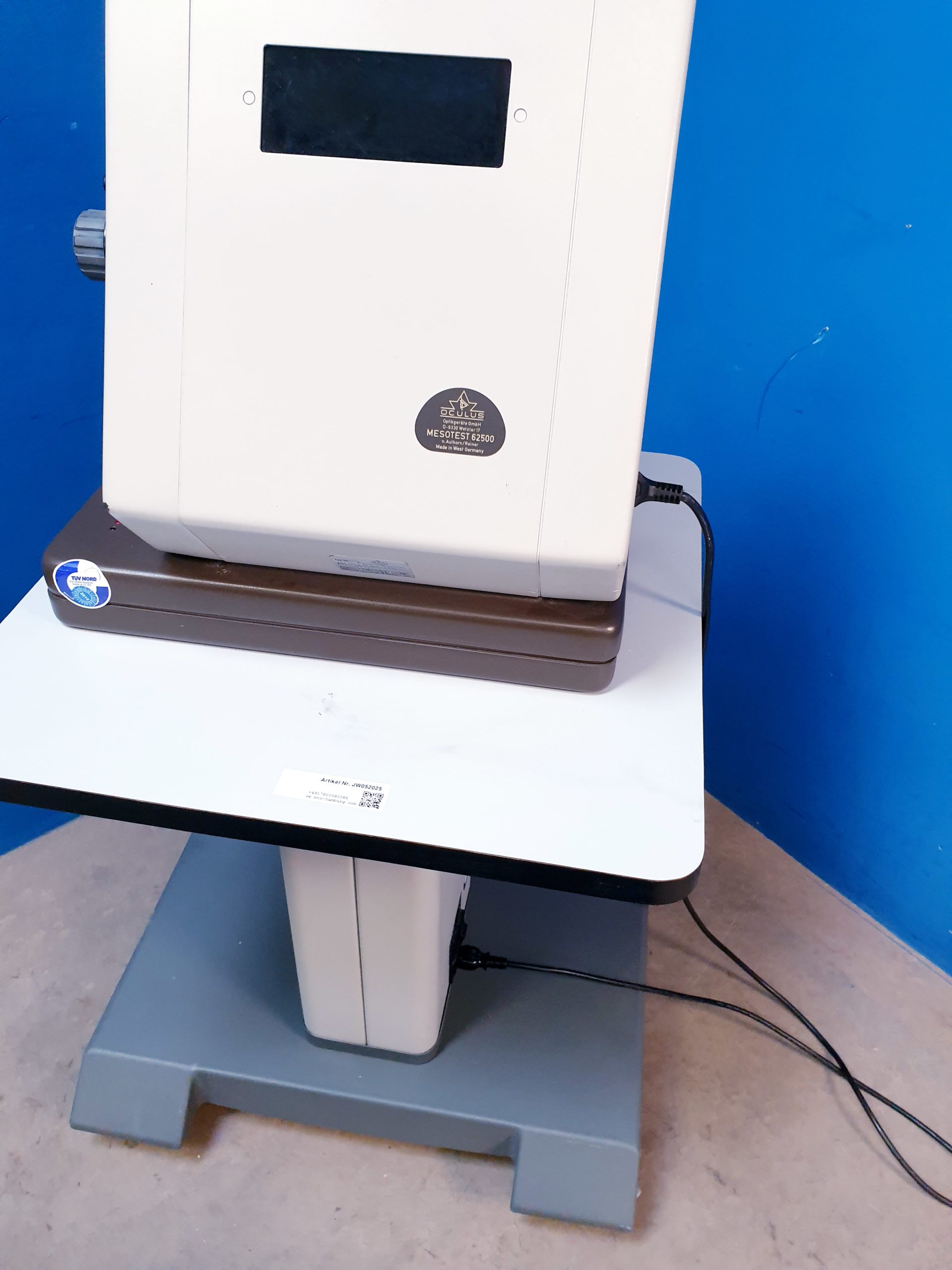 Der Oculus 62500 Mesotest ist ein Nyktometer, das zur Messung der Lichtempfindlichkeit und des Kontrasts in der Dunkelheit verwendet wird. Es ist ein wichtiges Instrument in der Augenheilkunde, insbesondere bei der Beurteilung von Nachtsehen und der Diagnose von Erkrankungen, die das Sehvermögen beeinträchtigen können.