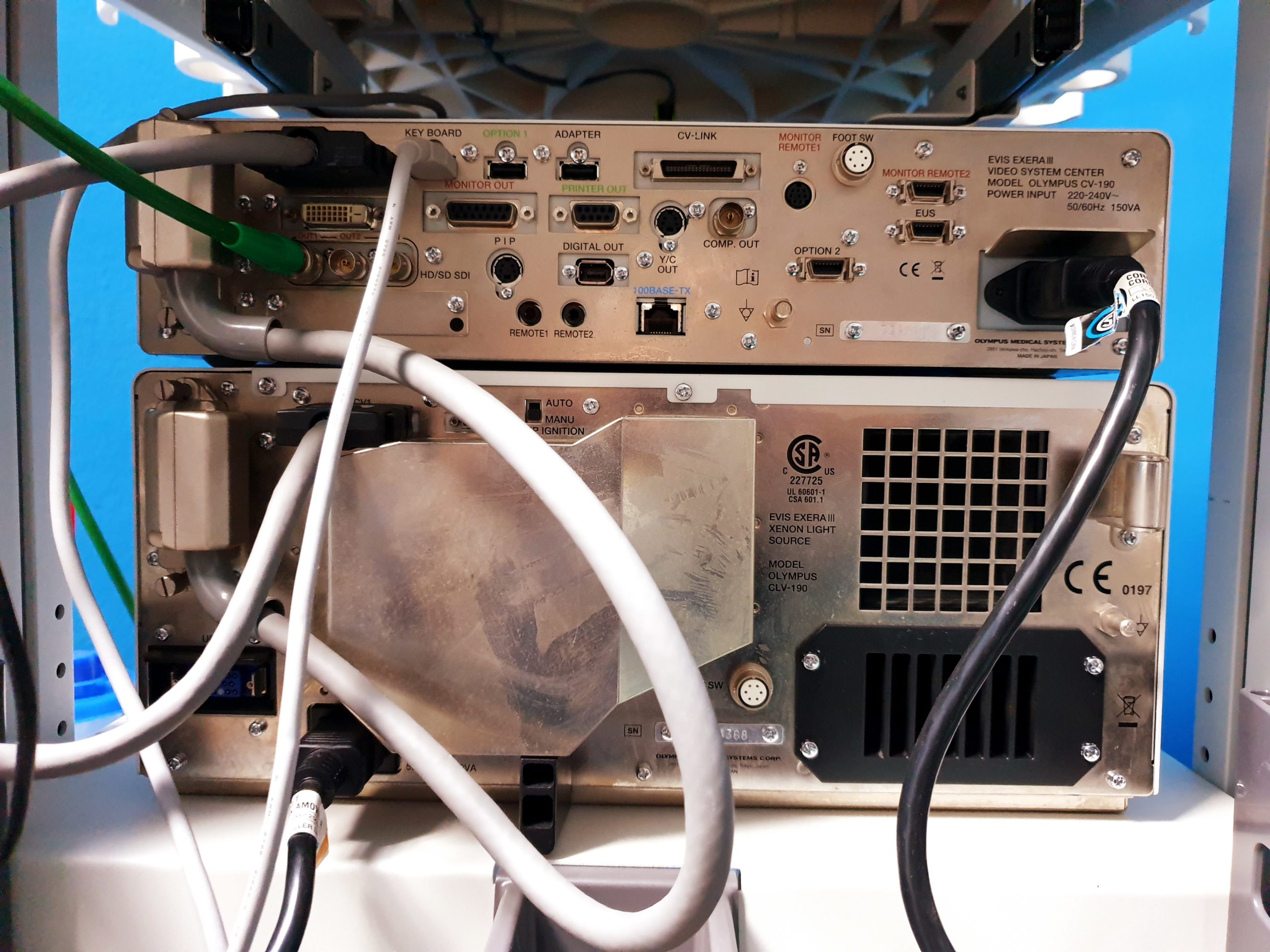 - CLV-190 Lichtquelle: Diese leistungsstarke LED-Lichtquelle sorgt für eine gleichmäßige und helle Ausleuchtung des Untersuchungsbereiches und trägt somit maßgeblich zur Bildqualität bei.