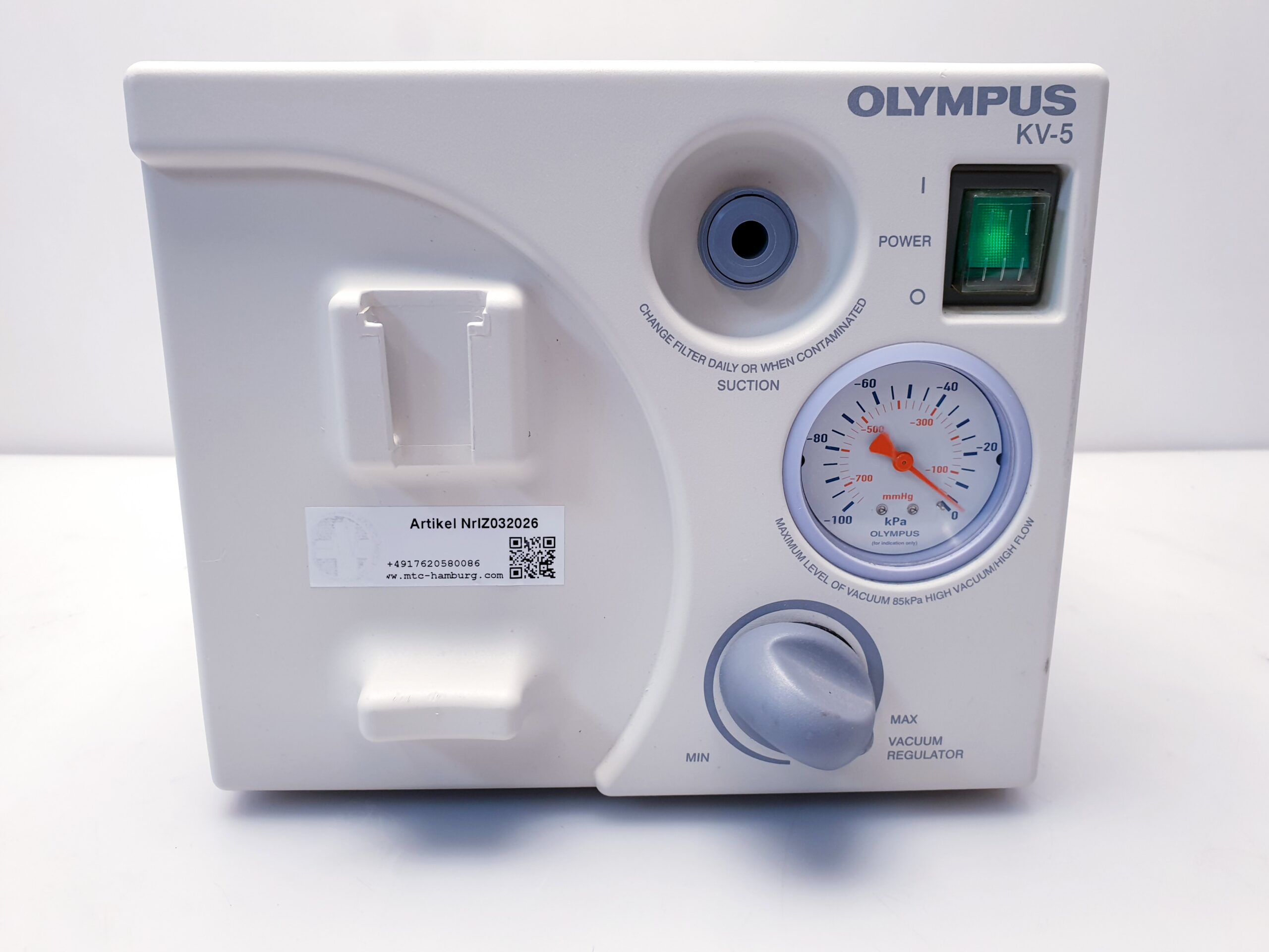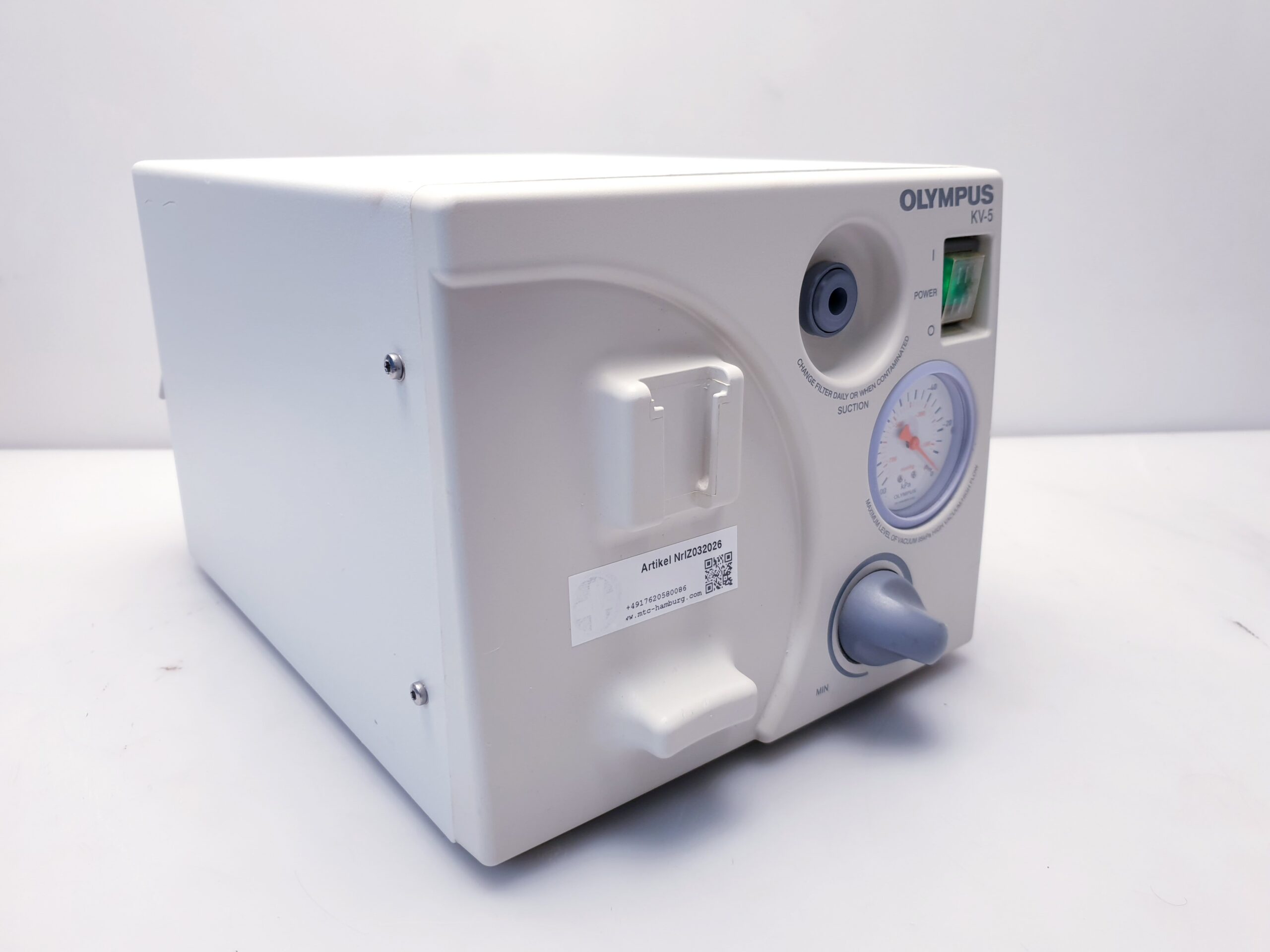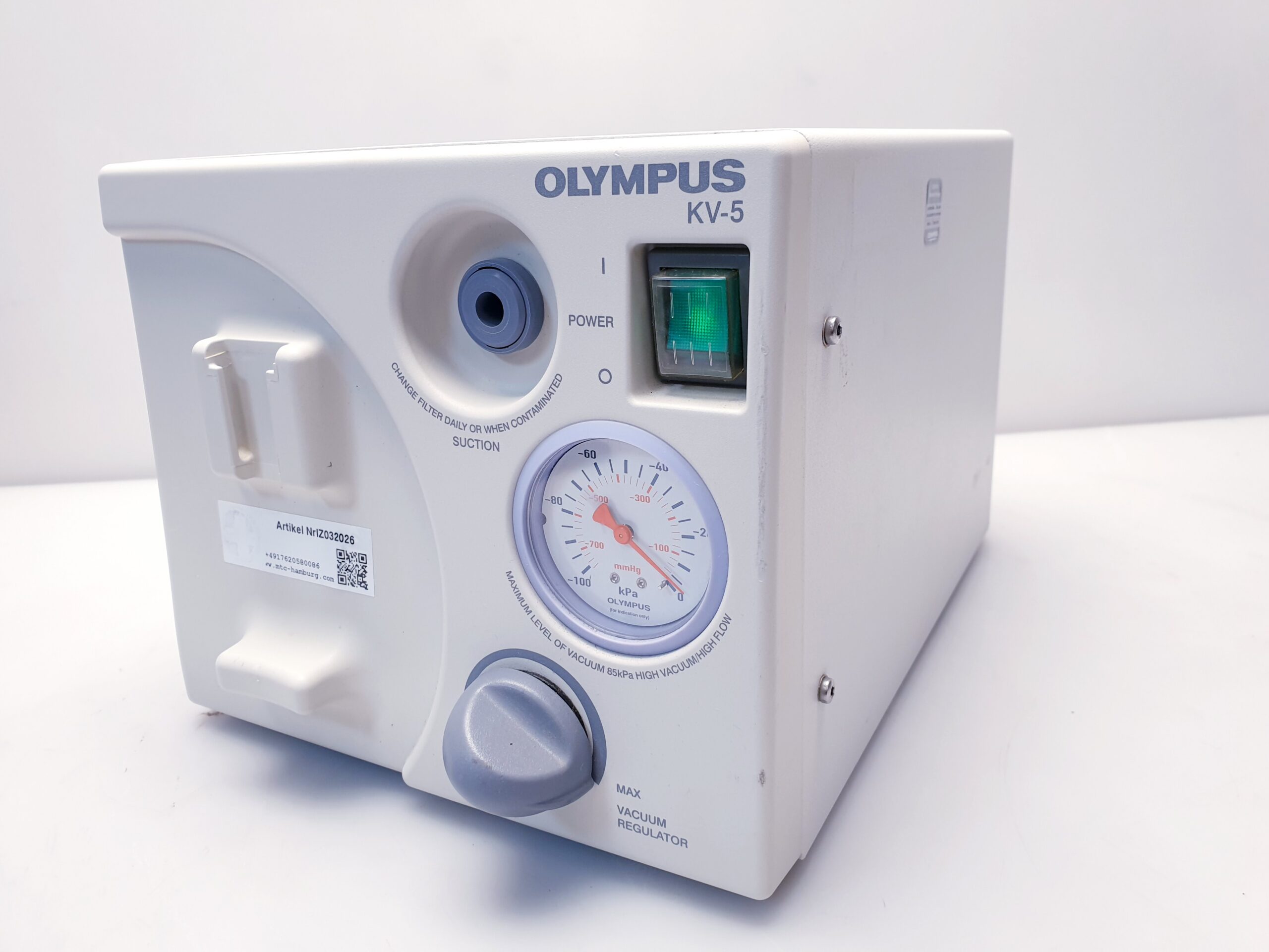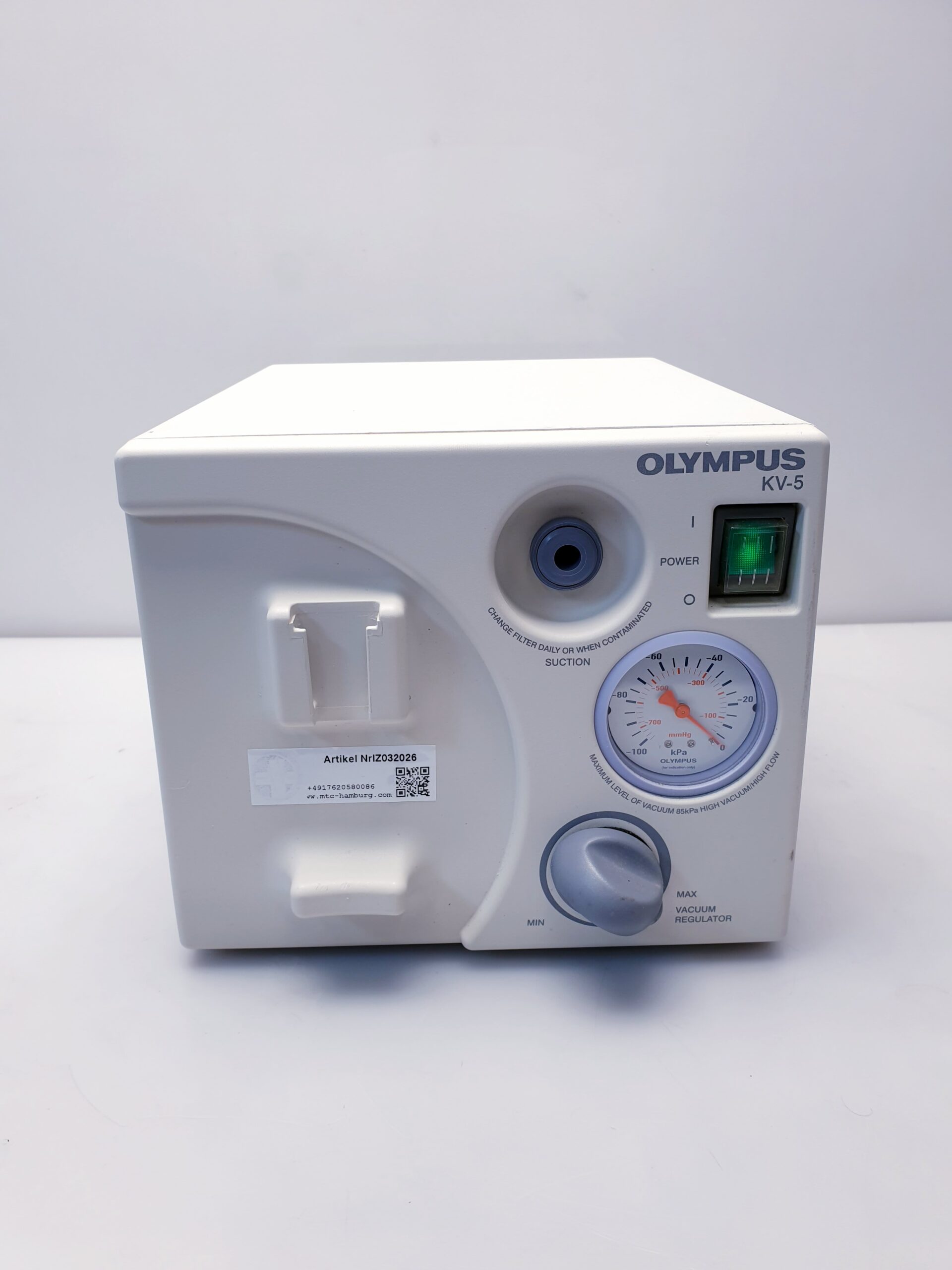 Der Olympus KV-5 (auch KV5 oder KV 5 genannt) ist ein Absauger, der häufig in der medizinischen und zahnmedizinischen Praxis eingesetzt wird. Er dient dazu, während chirurgischer Eingriffe oder Behandlungen Staub, Dämpfe und andere unerwünschte Partikel abzusaugen, um eine saubere und sichere Arbeitsumgebung zu gewährleisten.