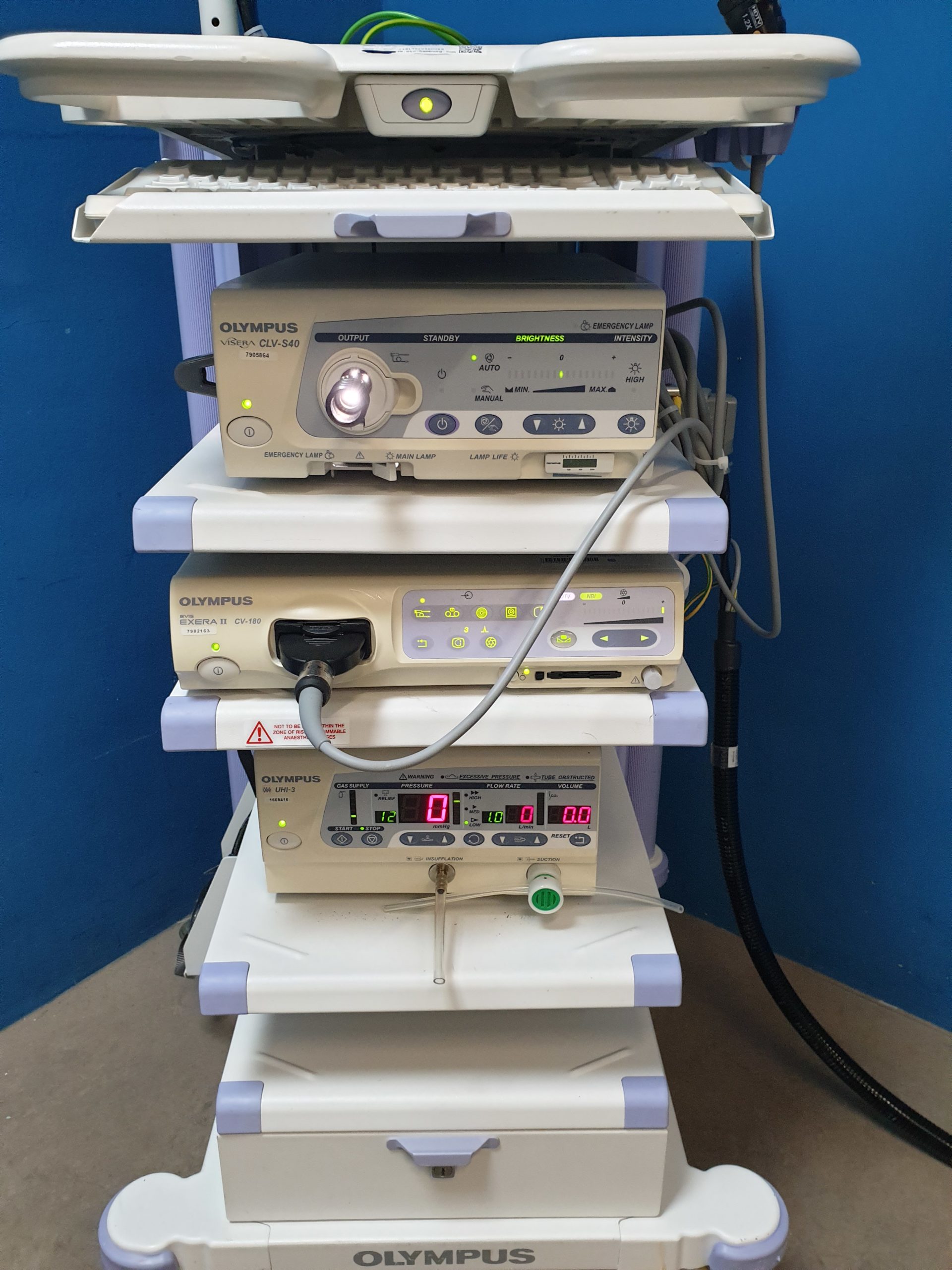 Zusammenfassend bietet das Olympus Turm CV-180 System mit HDTV-Kopf, CLV-S40 Lichtquelle, OEV-191H Monitor, UHI-3 Ultraschallmodul und dem modularen Turm eine umfassende Lösung für anspruchsvolle endoskopische Untersuchungen und Eingriffe. Es unterstützt medizinisches Fachpersonal dabei, präzise Diagnosen zu stellen und minimalinvasive Therapien sicher durchzuführen.