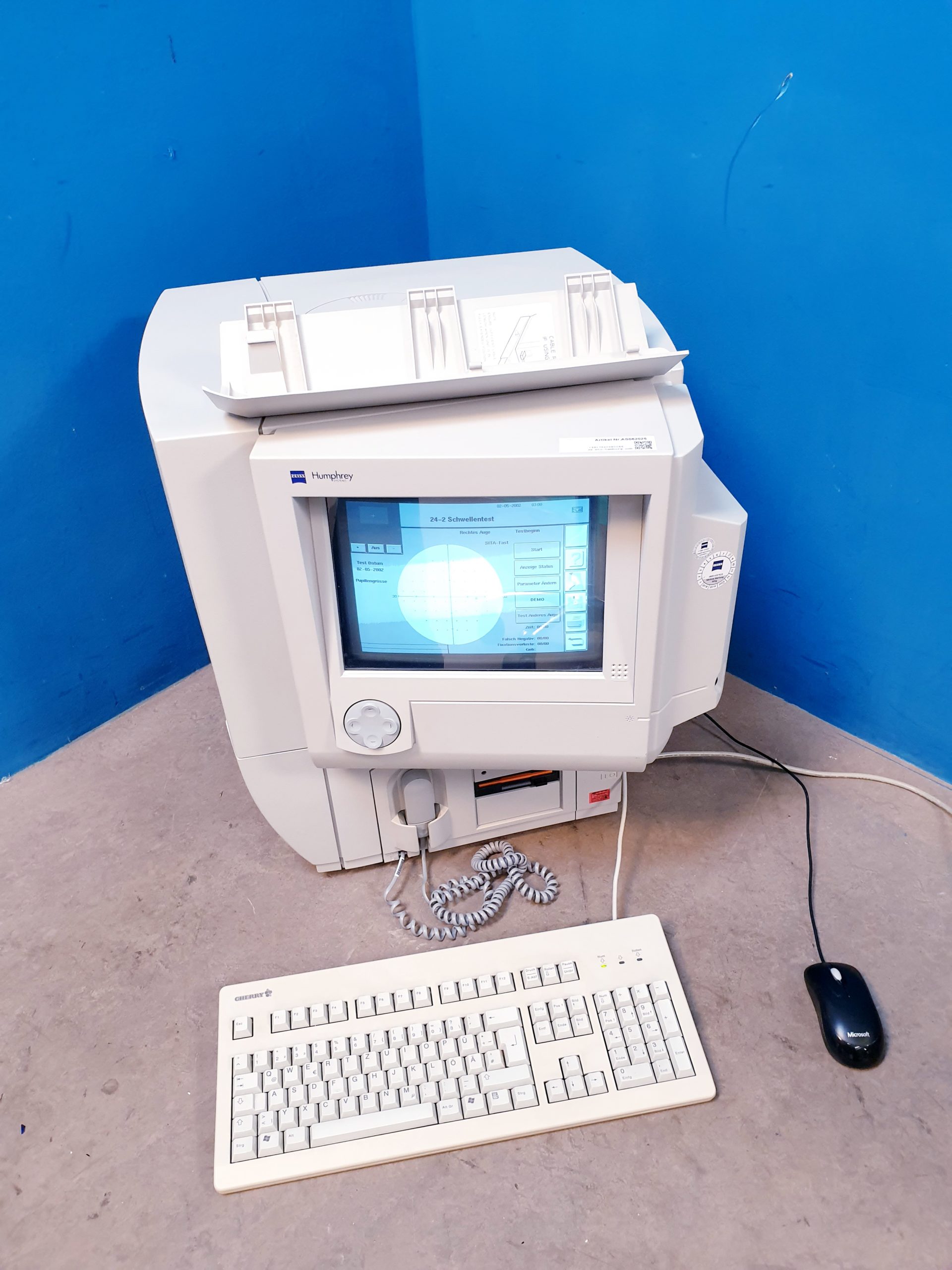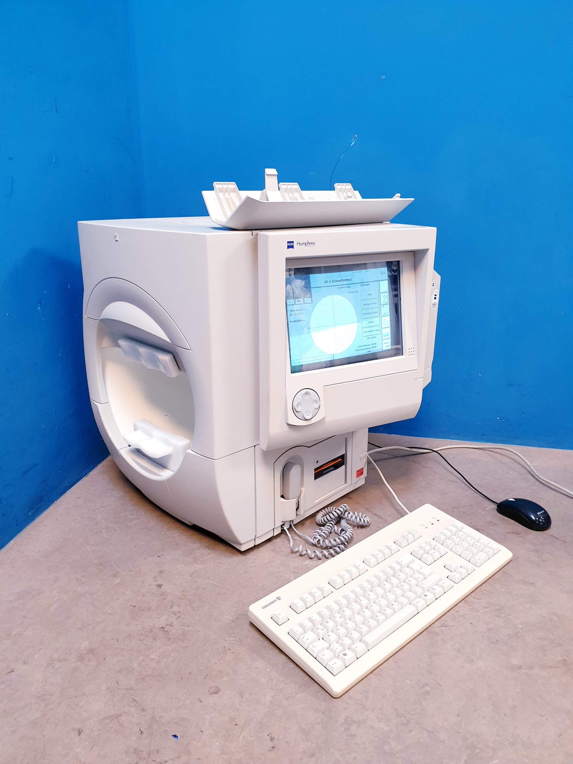 Perimeter Zeiss Humphrey Field Analyzer, Modell 740i ist ein hochpräzises Diagnostikgerät zur computergestützten Messung des Gesichtsfelds, das insbesondere in der Glaukomdiagnostik und neuro-ophthalmologischen Untersuchung eingesetzt wird. Durch seine zuverlässige und schnelle Analyse unterstützt es Augenärzte bei der frühzeitigen Erkennung und Verlaufskontrolle von Sehstörungen.