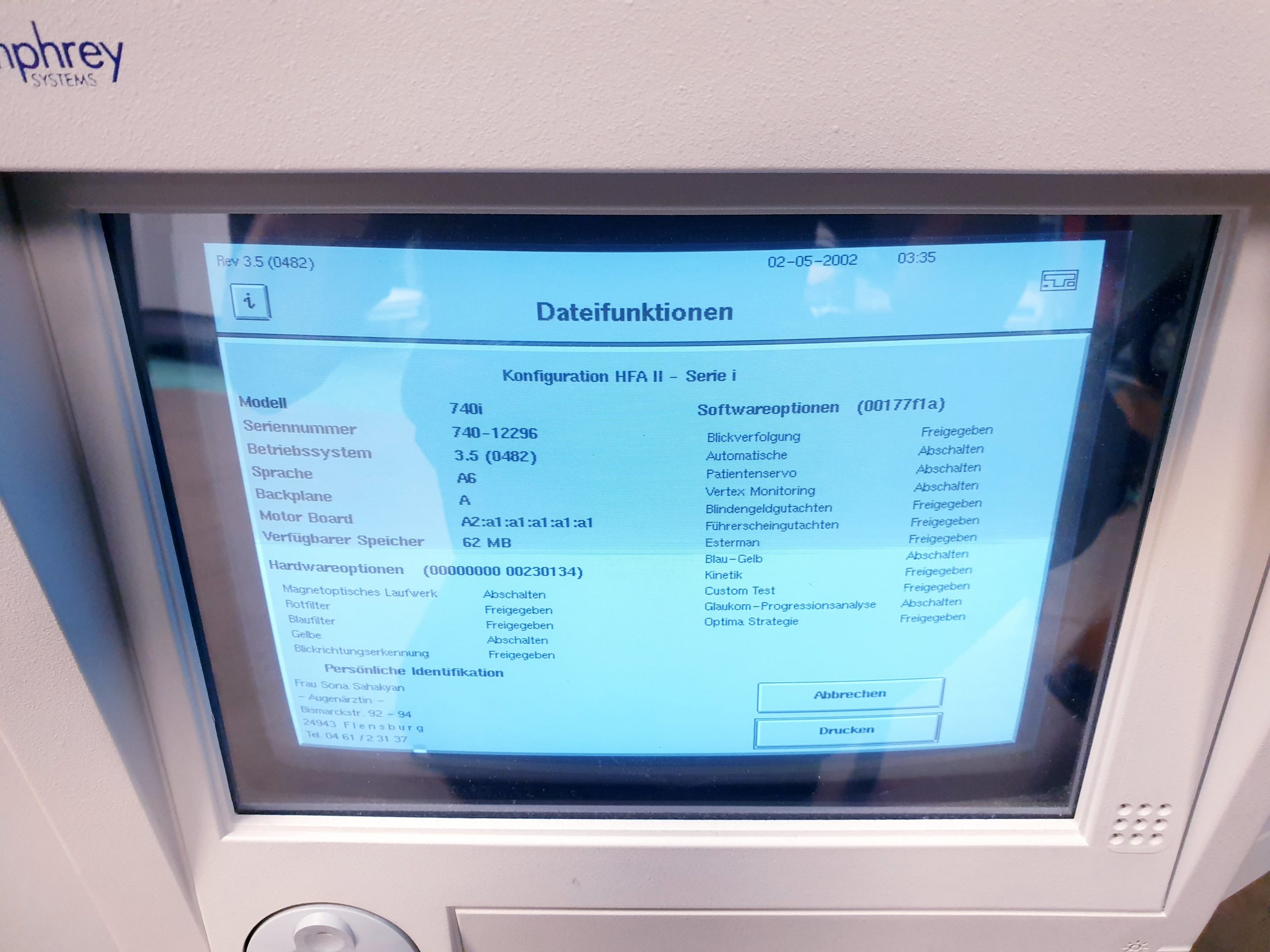 Perimeter Zeiss Humphrey Field Analyzer, Modell 740i – FIELD ANALYSER PERIMETER