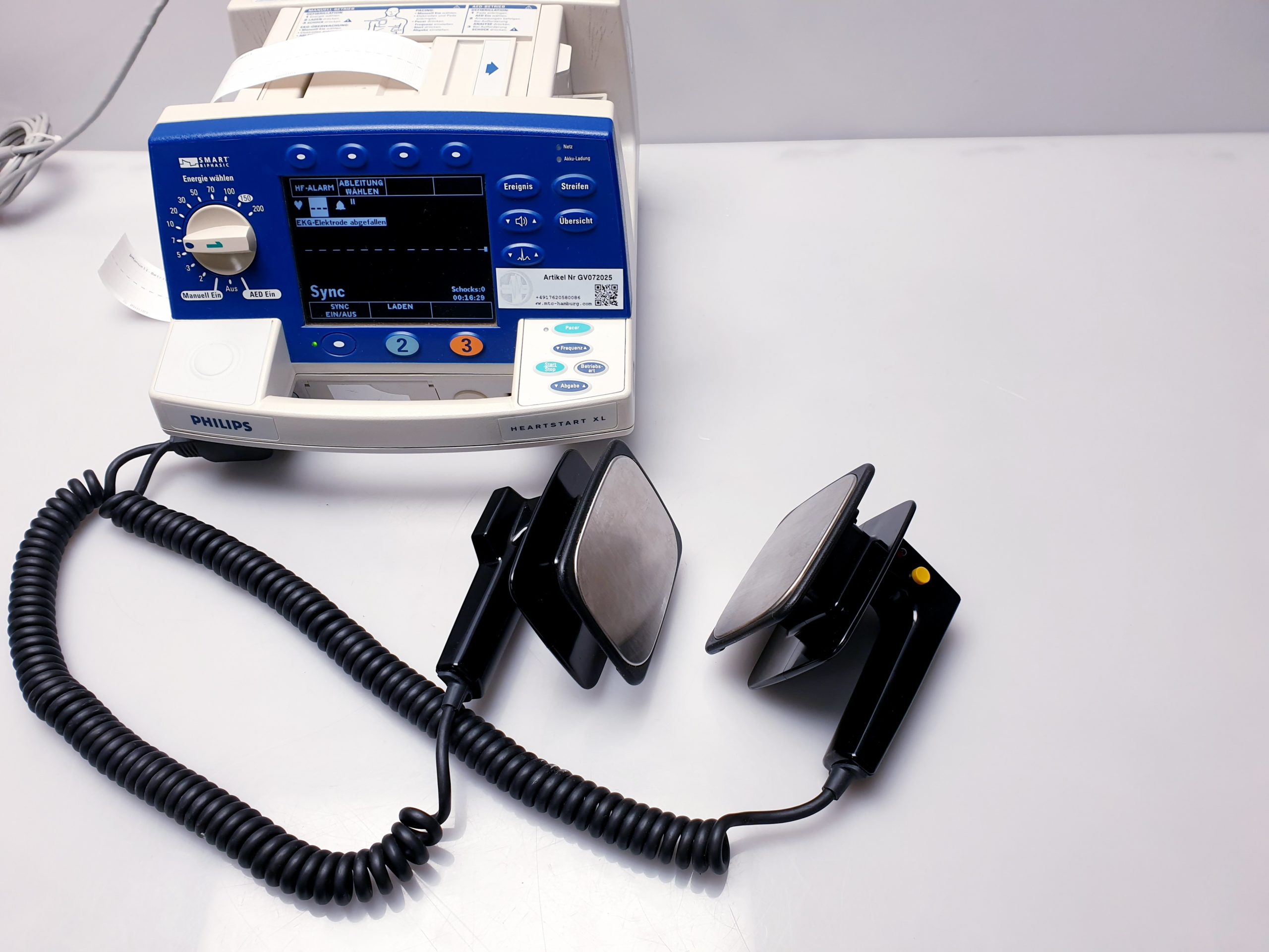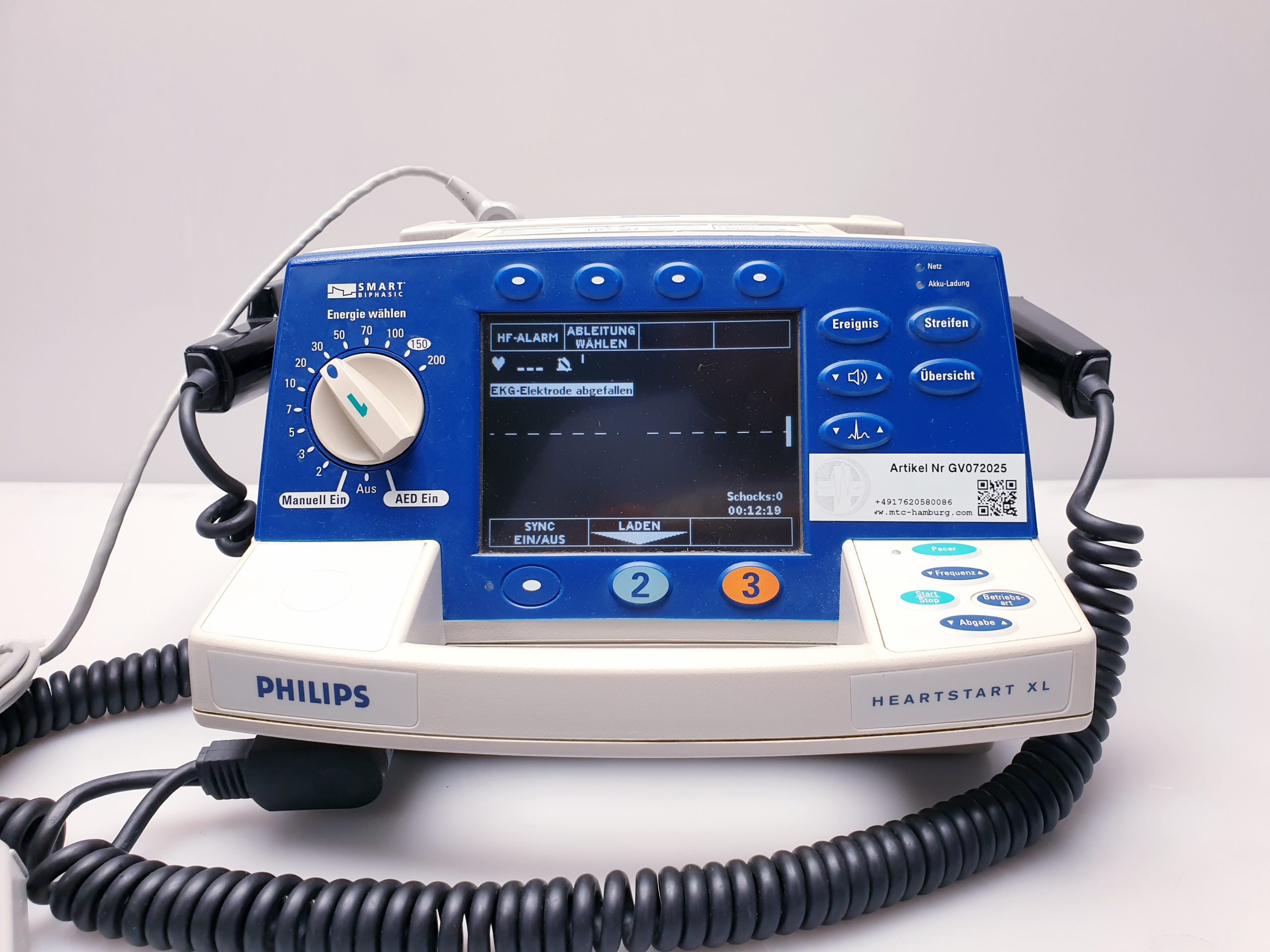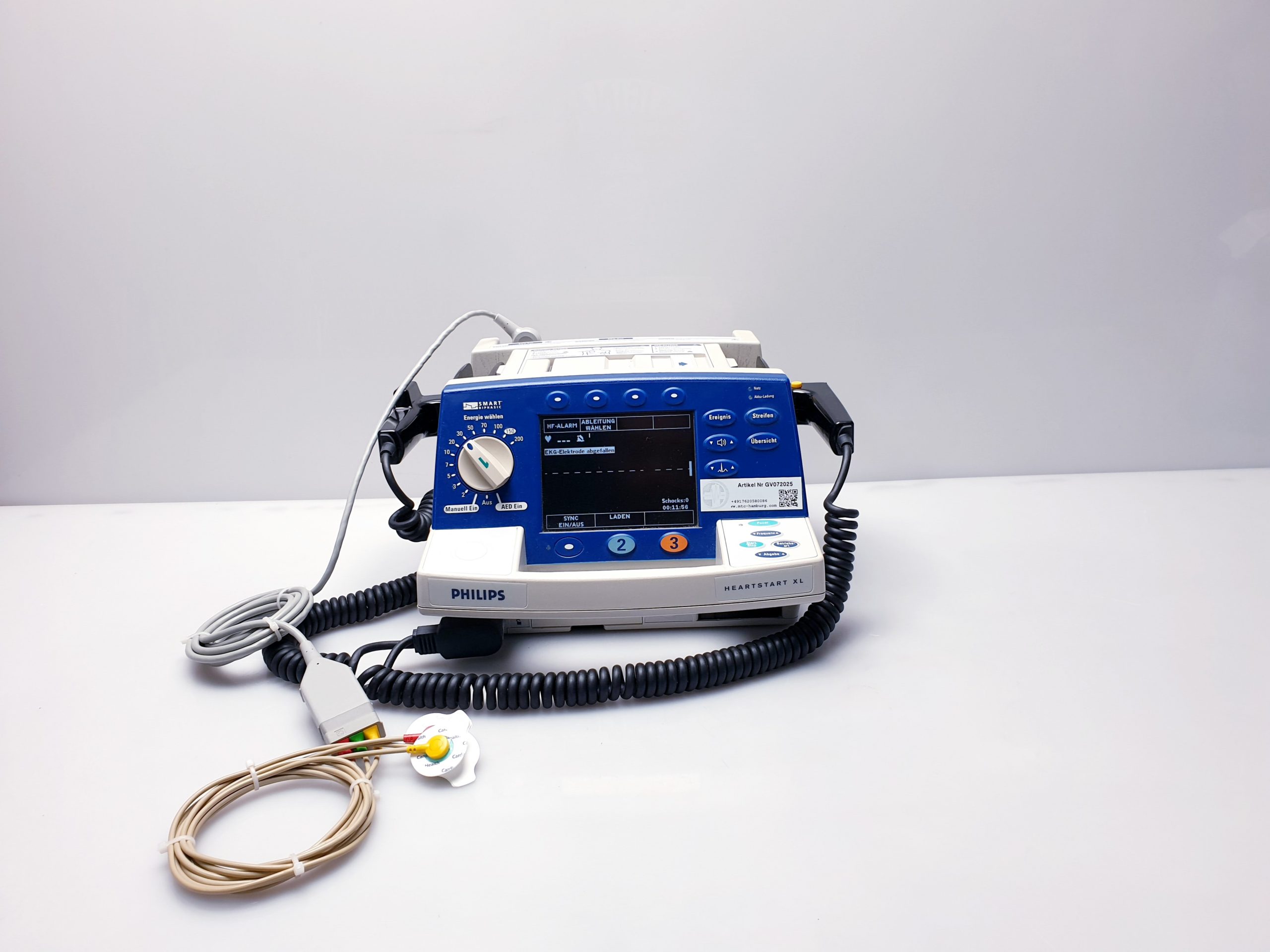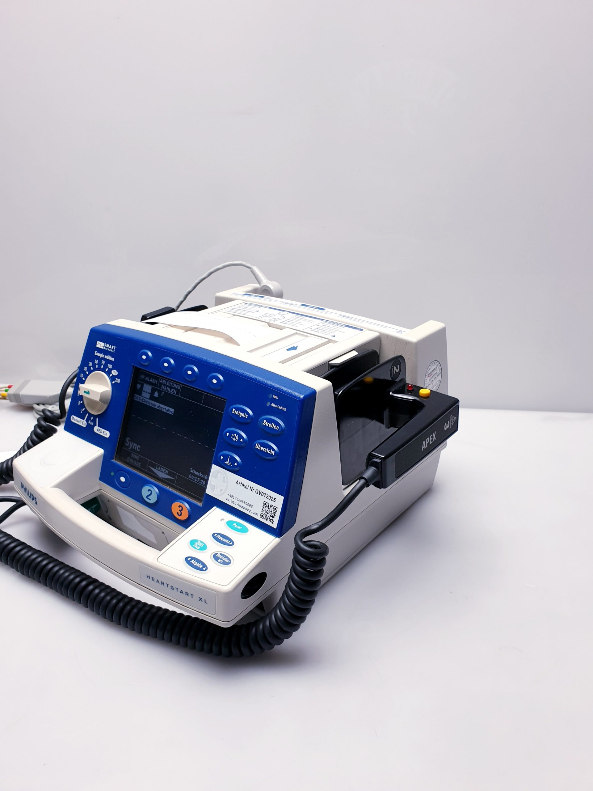 Der Philips Heartstart XL Biphasic Defibrillator bietet zuverlässige Defibrillation mit modernem biphasischem Impuls und integriertem ECG-Monitoring zur präzisen Herzrhythmusanalyse. Dieses professionelle Gerät unterstützt medizinisches Personal effektiv bei der schnellen Wiederherstellung eines stabilen Herzrhythmus im Notfall.