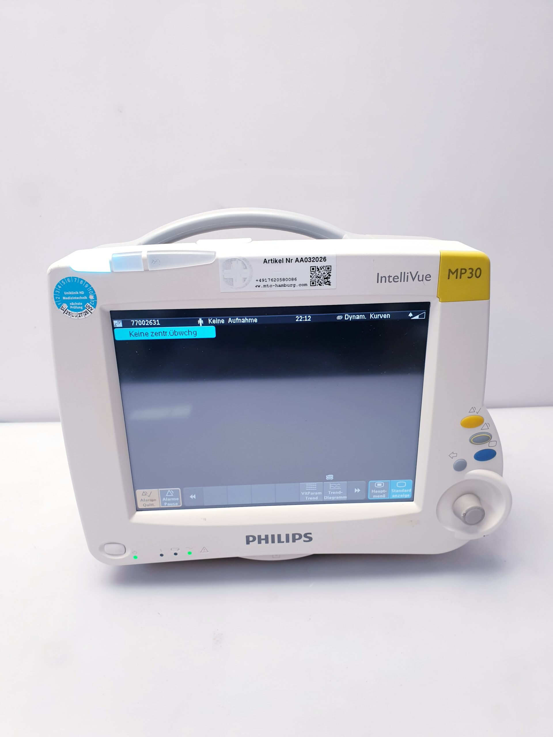 Der Philips IntelliVue MP30 (Modellnummer M8002A) ist ein kompakter, leistungsstarker Patientenmonitor, der speziell für die Überwachung in Bereichen mit mittlerer Pflegeintensität, bei ambulanten Operationen oder während des Patiententransports entwickelt wurde. Er kombiniert eine benutzerfreundliche Touchscreen-Bedienung mit flexiblen Messmöglichkeiten durch das Multi-Measurement-Server-Konzept.