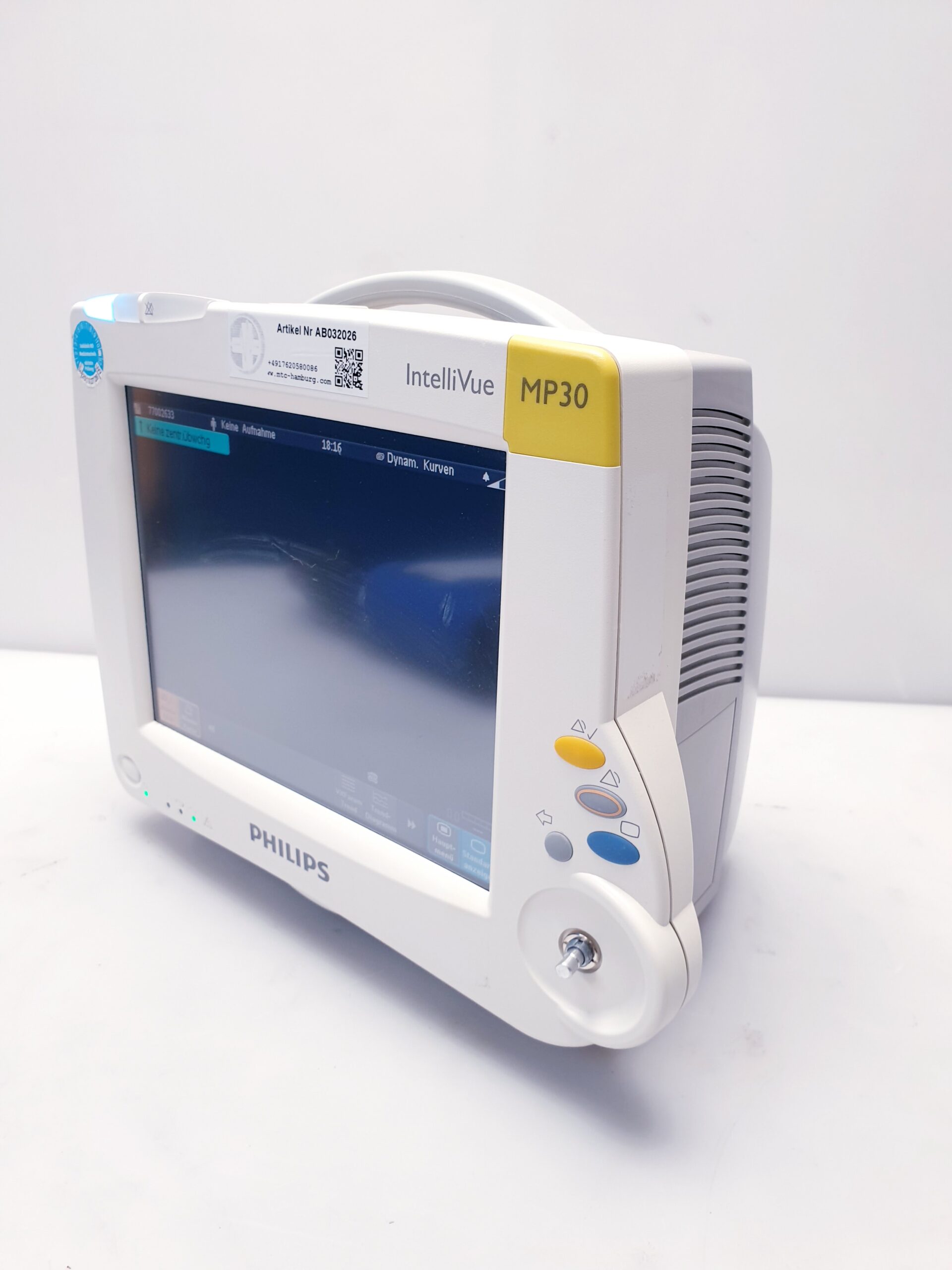 Der Philips IntelliVue MP30 (Modell M8002A) ist einer der verbreitetsten Patientenmonitore für den klinischen Einsatz. Er ist kompakt genug für den Transport, aber leistungsstark genug für die Intermediate Care (IMC) oder den OP.