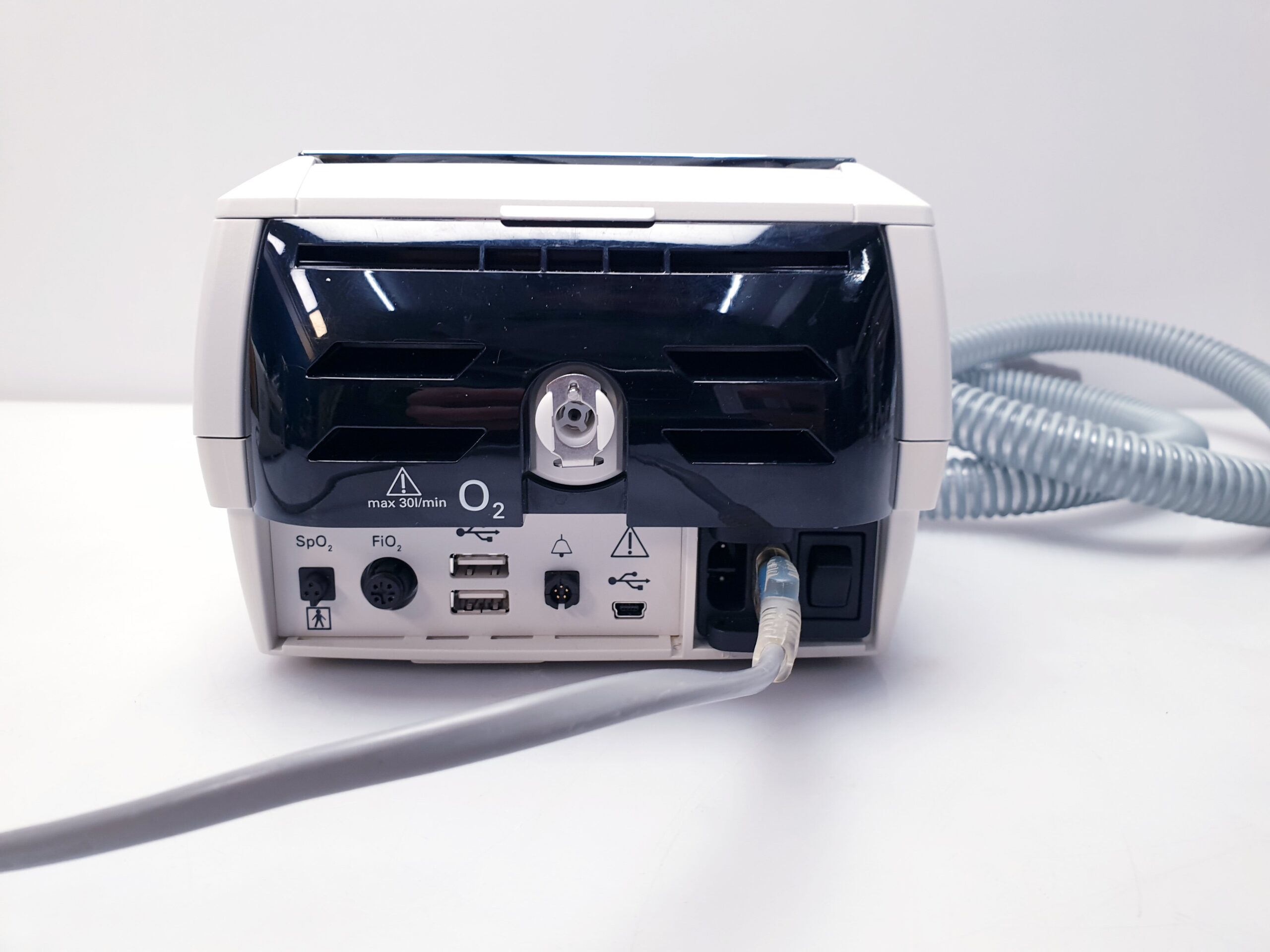 Überwachung: Es verfügt über Echtzeit-Anzeigen für Druck und Fluss sowie einen integrierten FiO2-Sensor zur Sauerstoffüberwachung.