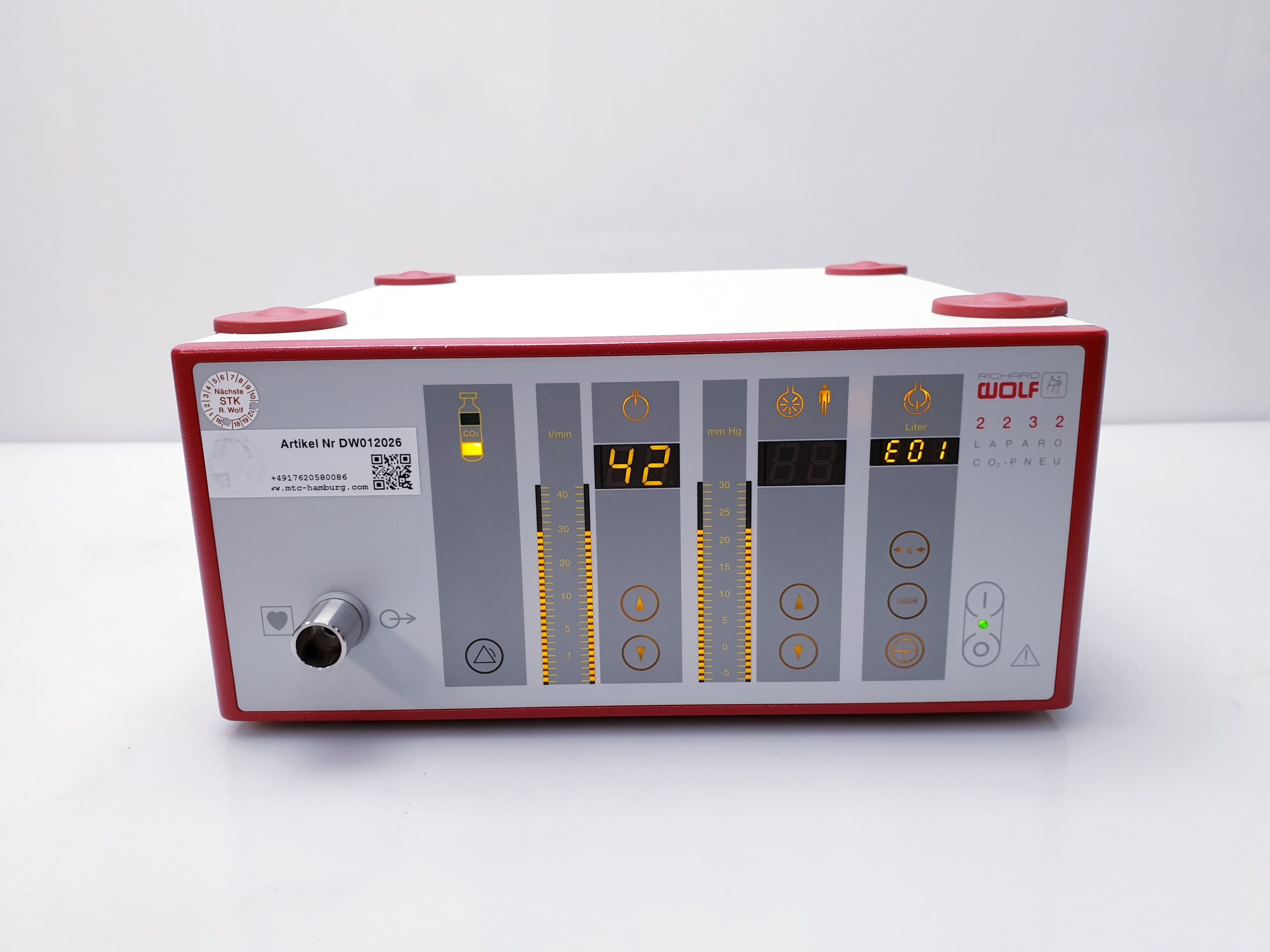 Der RICHARD WOLF 2232 Elektronische CO2-Insufflator ist ein hochmodernes medizinisches Gerät, das speziell für die sichere und präzise CO2-Insufflation bei endoskopischen Eingriffen entwickelt wurde. Dieses Gerät gewährleistet eine optimale Erweiterung von Hohlräumen, um eine verbesserte Sicht und Arbeitsbedingungen für den Operateur zu schaffen.