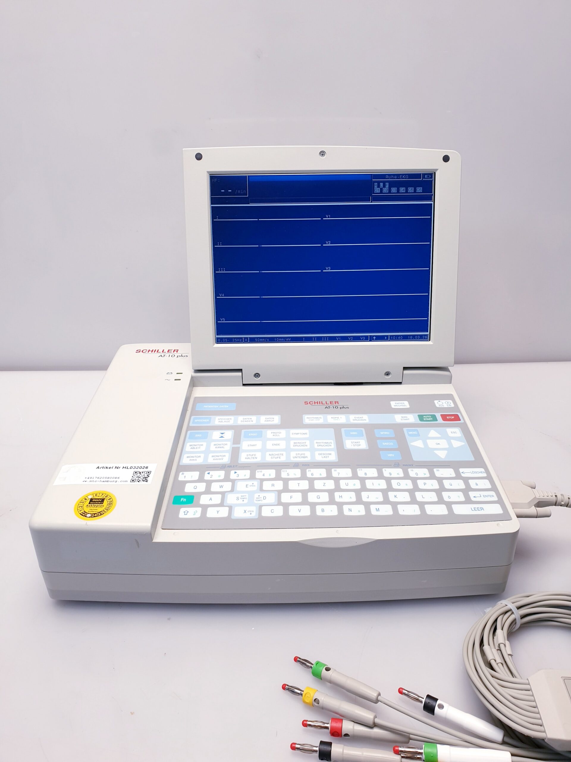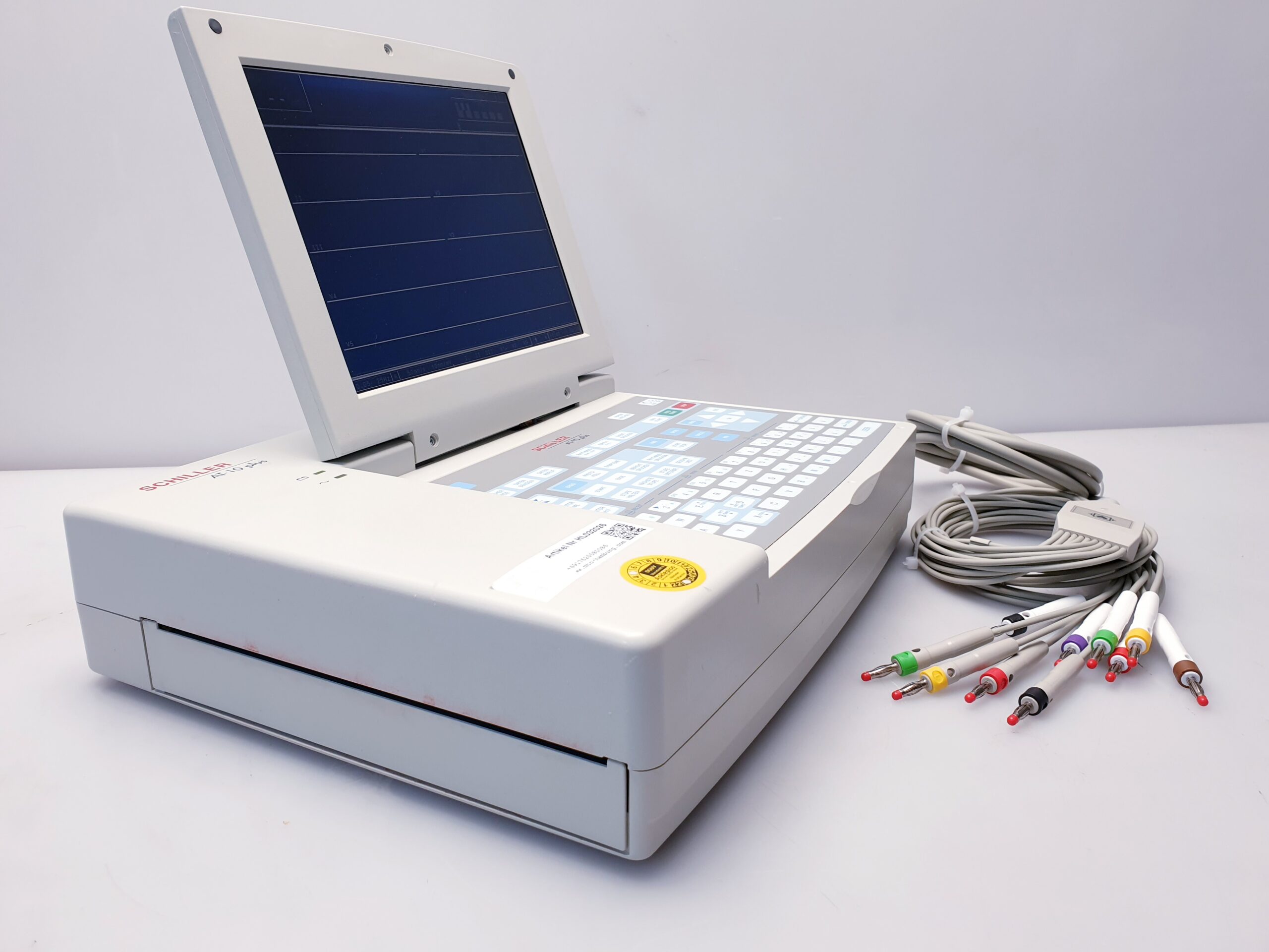 Das Schiller AT-10 PLUS ist ein hochmodernes 12-Kanal-EKG-Gerät, das speziell für den klinischen Einsatz in Arztpraxen, Krankenhäusern und medizinischen Zentren entwickelt wurde. Mit seinem klaren LCD-Display bietet es eine übersichtliche und präzise Darstellung der EKG-Daten, wodurch eine schnelle und zuverlässige Diagnostik unterstützt wird.