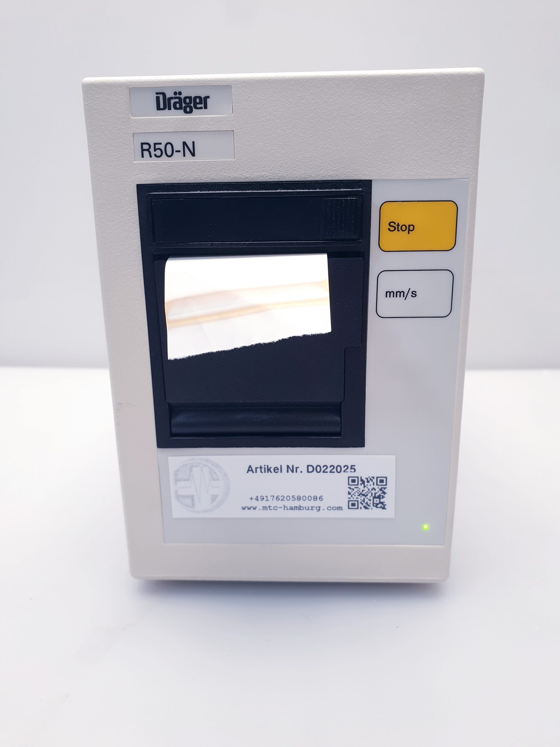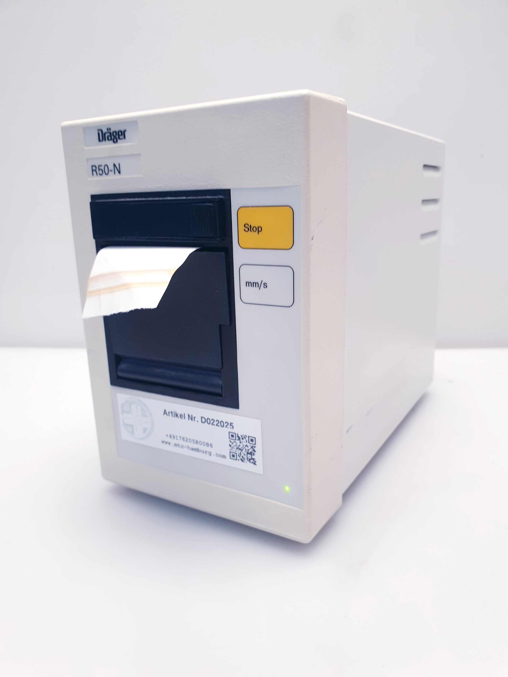 Der Draeger R50-N Patient Monitor Printer/Recorder ist ein hochentwickeltes Gerät, das speziell für die zuverlässige und präzise Aufzeichnung von Patientendaten in klinischen Umgebungen entwickelt wurde. Dieses Gerät ergänzt die Draeger Patientenmonitore optimal, indem es eine nahtlose Dokumentation der vitalen Parameter ermöglicht.