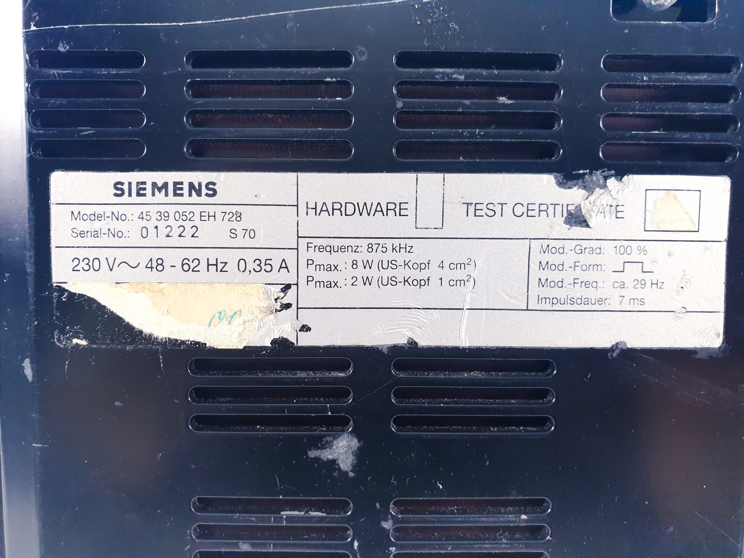 Siemens SONOSTAT 833 Ultraschalltherapiegerät mit ERA 4Cm2 875 KHz Kopf